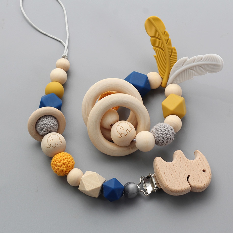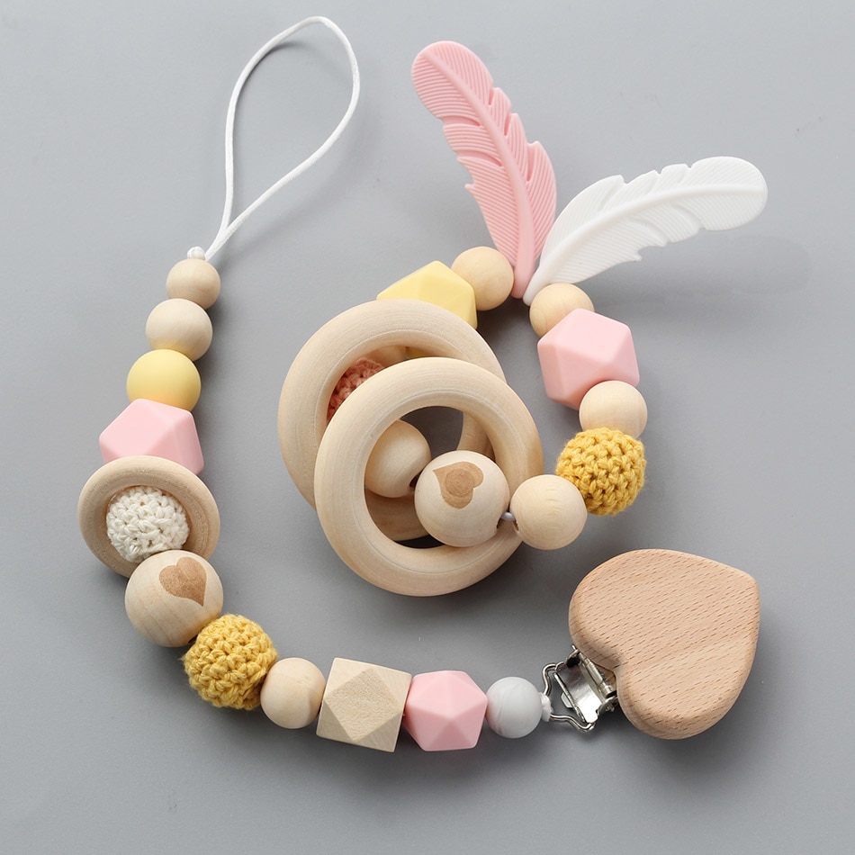 New Baby Pacifier Clip Chain Dummy Holder Nipples Children Pacifier Clips Pacifier Teether Teething Toy Cartoon Wooden Bracket