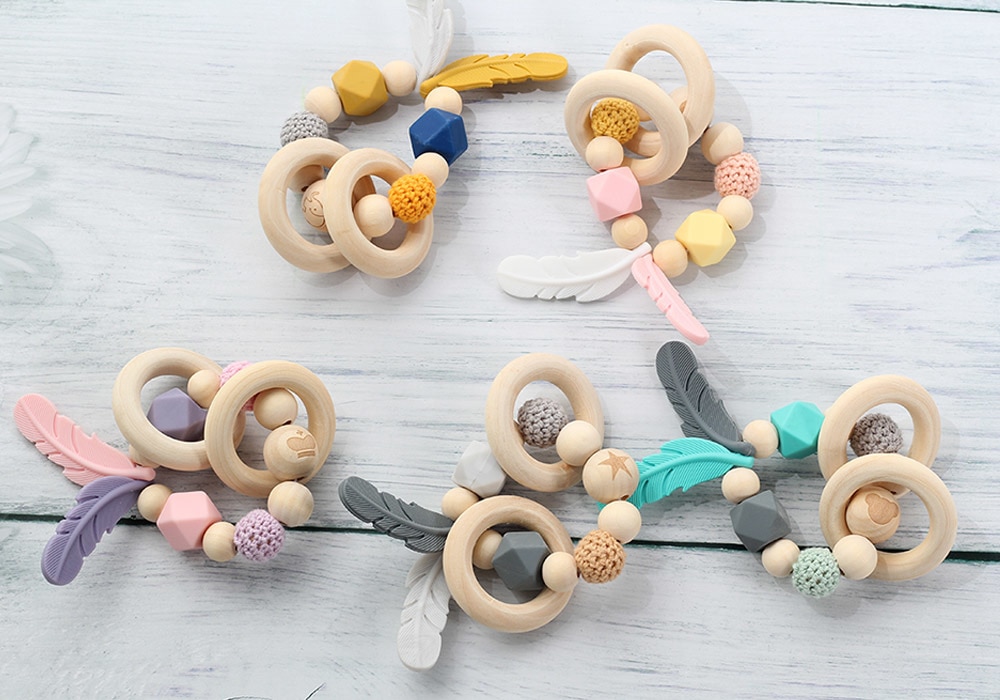 The baby teether made of food-grade silicone is safe and non-toxic, simple to clean and disinfect, suitable softness to relieve the discomfort of the baby's teeth, and train the baby's teeth and gums. The shape of the teether is easy for the baby to grasp, and the color and shape are rich. Fun puzzle, let the baby put it down.