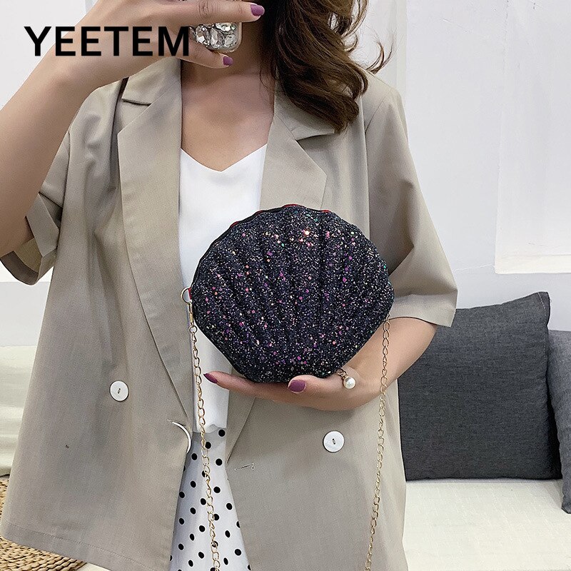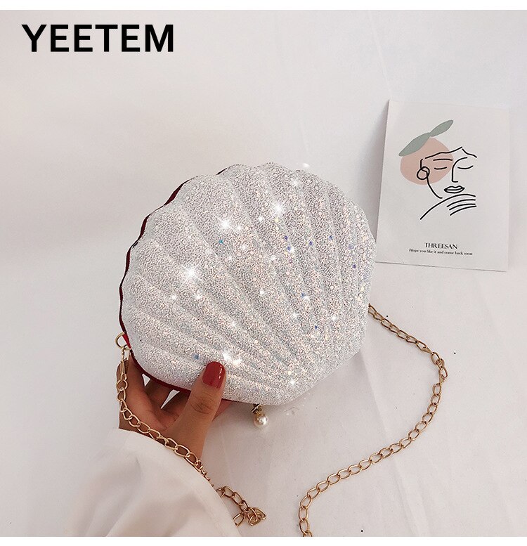 Fashion Chain Pearl Sequin Banquet Party Shiny Mini Shell Bag Lady Messenger Bag Wallet Purses And Handbags Luxury Designer