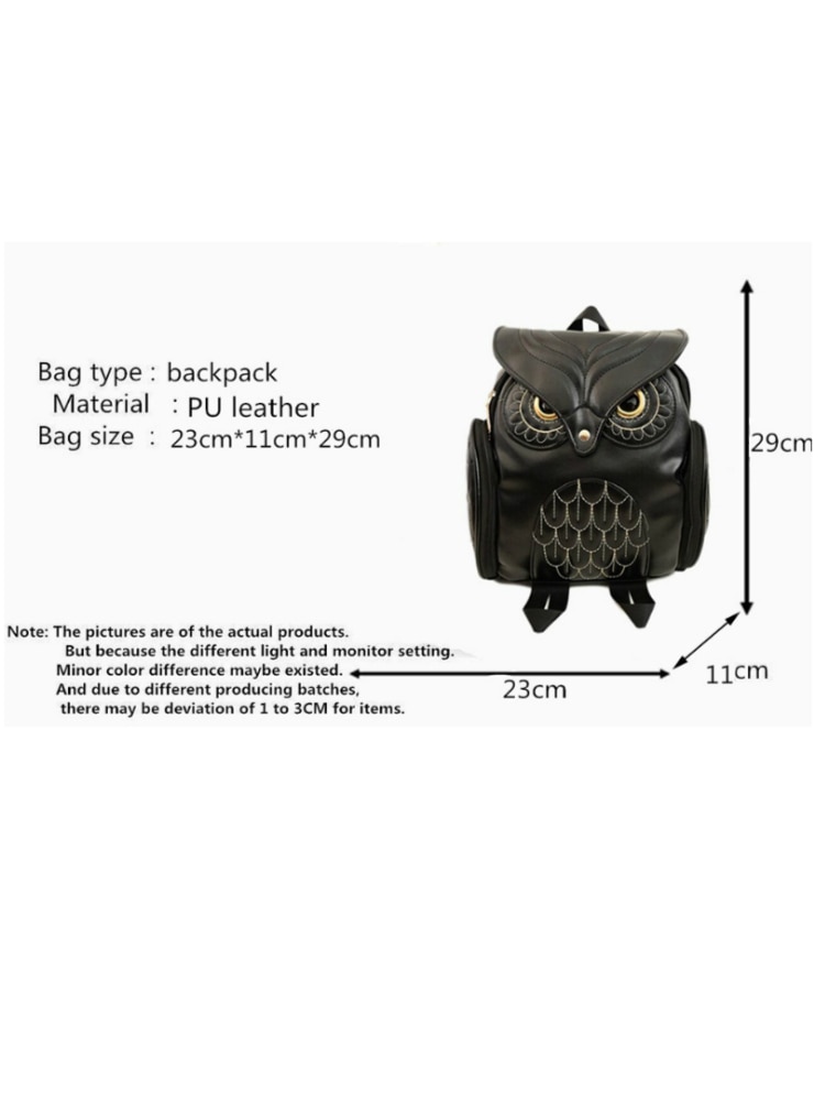 Faux Leather Owl Embrodiery Backpack For Women School Shoulder Bag