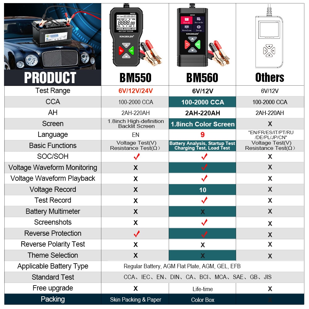 KINGBOLEN BM560 BM550 Car Battery Tester 24V 6V 12V Detect Auto Battery Analyzer 100-2000 CCA Battery Waveform Car Battery Tool