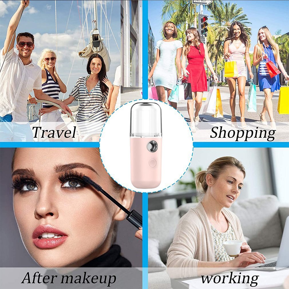 1. USB charging, compact and light, easy to carry or use. Use after makeup can keep long-lasting makeup intact.
