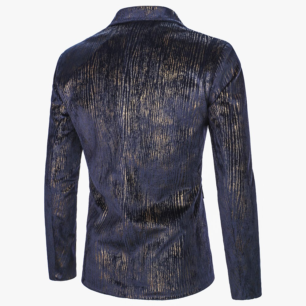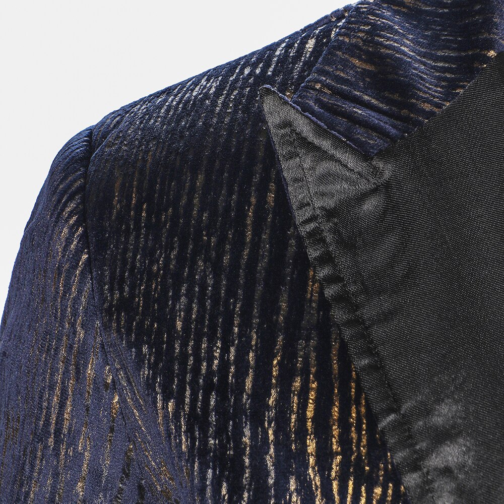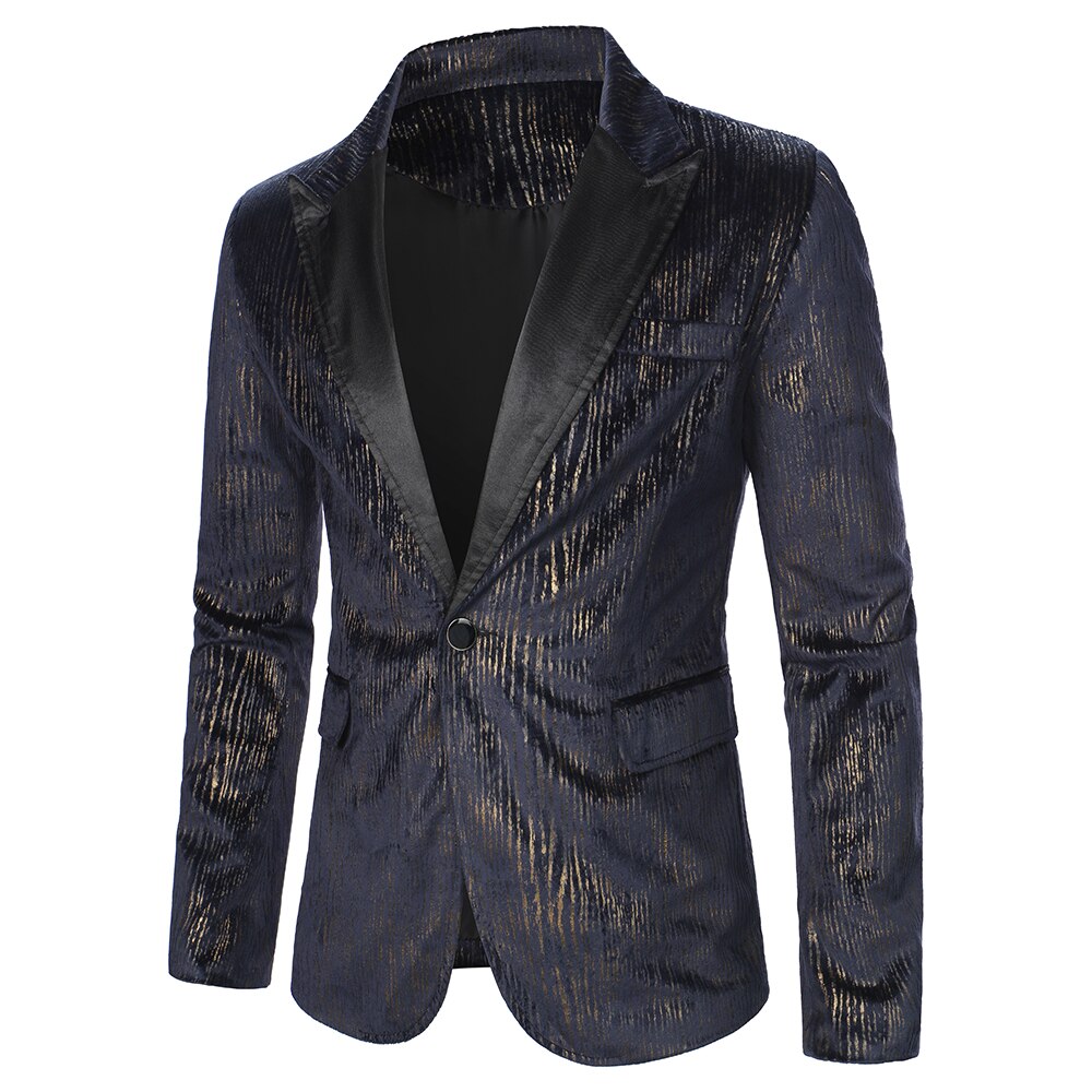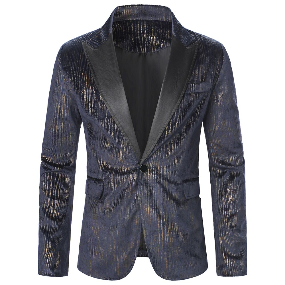 Men Blazer Long Sleeve Gloss Material Fabric Solid Color Collar Chest Pocket Design Causal Party Fashion Slim Fit Men Blazer