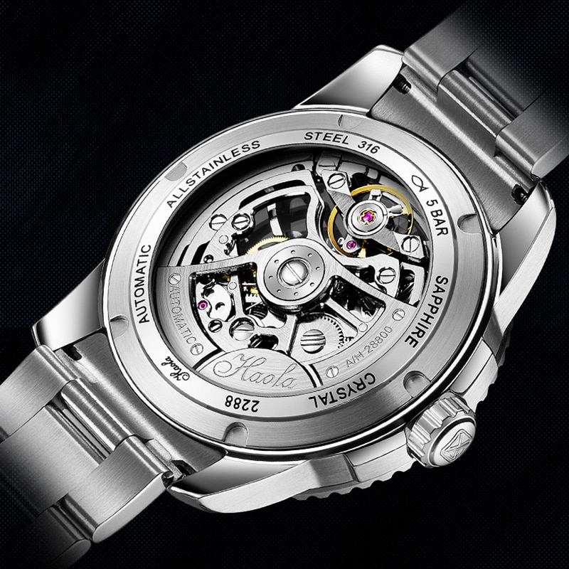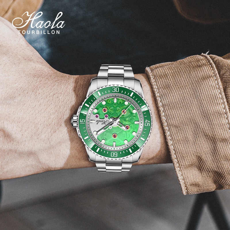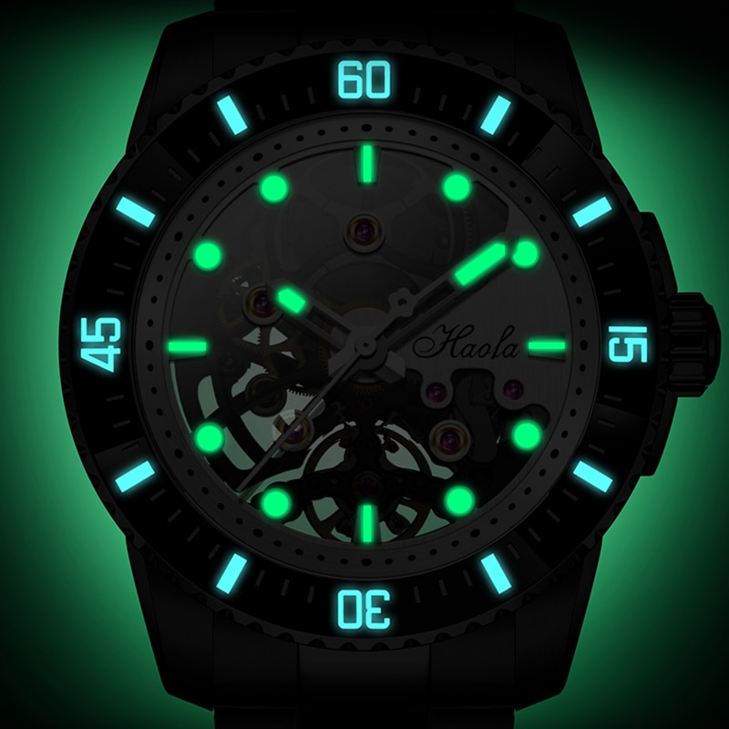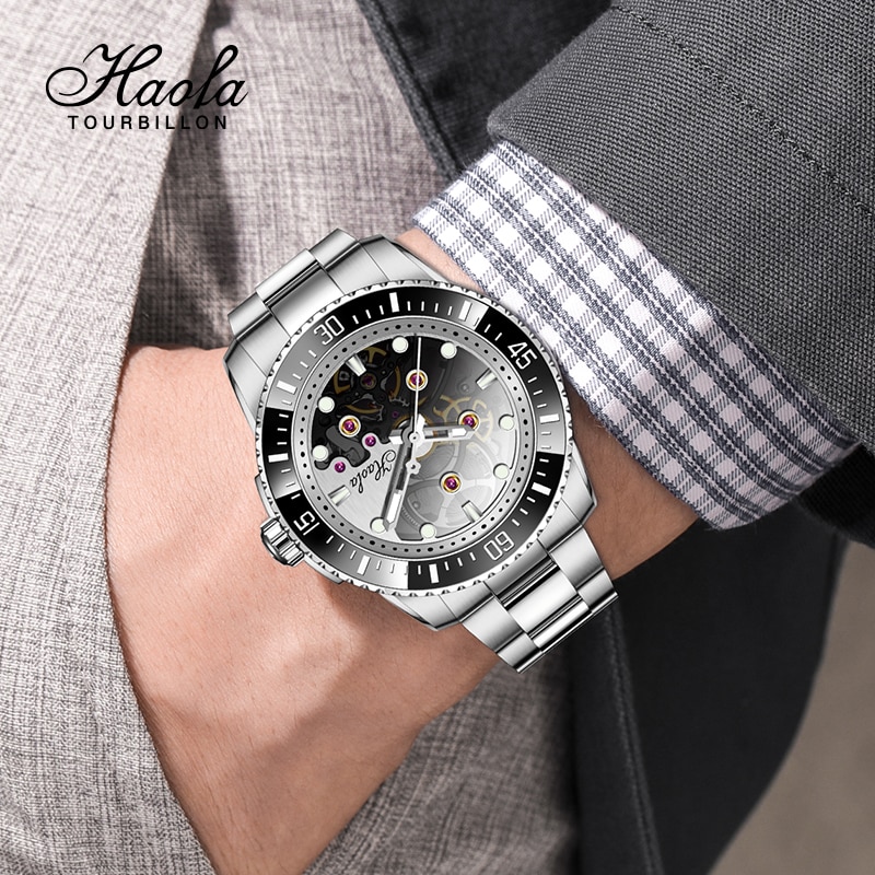 Haofa Automatic Mechanical Watch For Men Luminous Stainless Steel Waterproof Mens Watch Luxury Sapphire Skeleton Ceramic Bezel