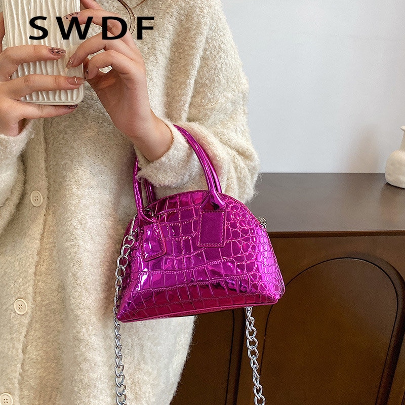 2023 Luxury Women Glossy Alligator Print Leather Party Tote Designer Green Chain Shoulder Bag Crossbody Bags Handbags and Purses