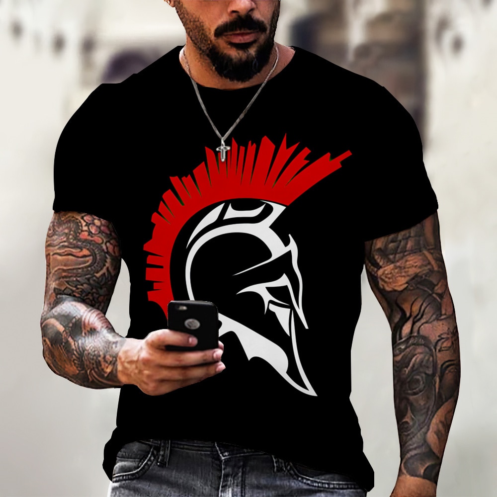 2023 New Spartan Warrior Men's T-shirt Cotton Tops 3D Printed Short Sleeve Mens Clothing O-Neck Oversized Casual Pullover Tees