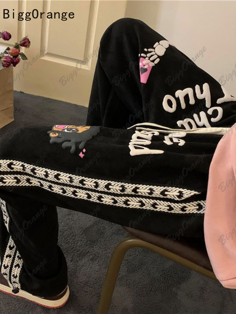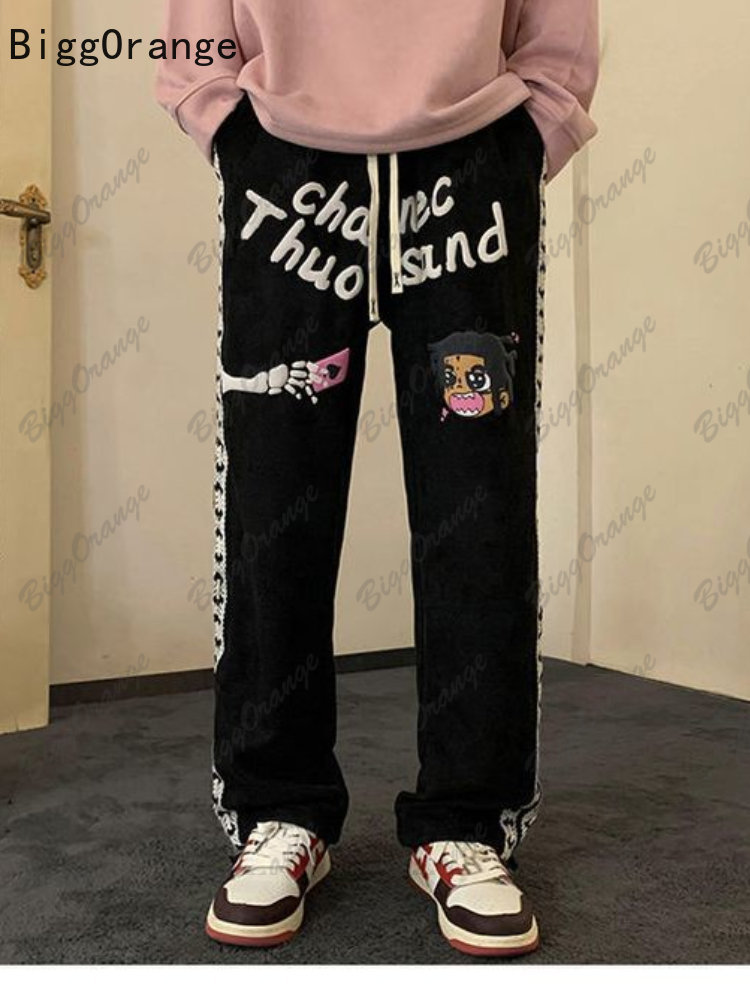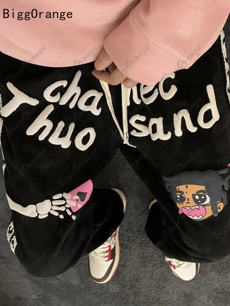 Suede Heavy Printing Casual Pants Trousers Men and Women High Street Pants for Men Loose Casual Straight Fashion Wide Leg Pants