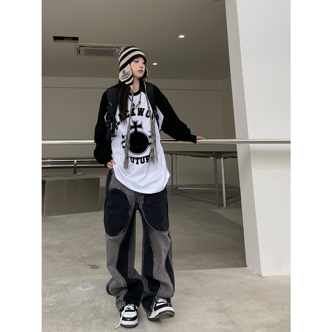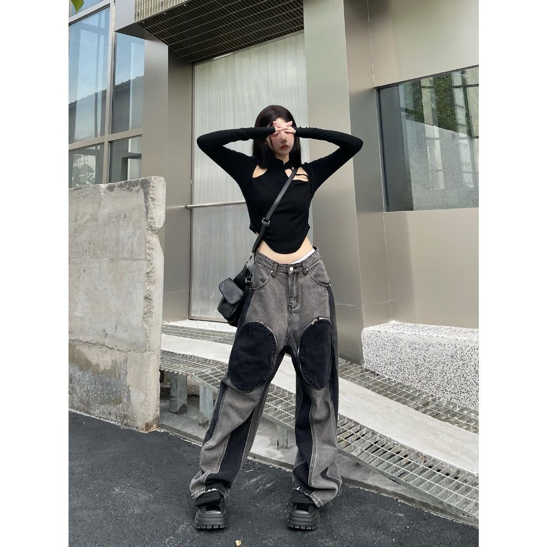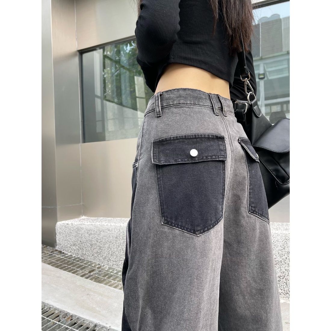 American-style big pocket old jeans men and women Y2K high street personality pocket loose straight trousers ins mopping pants