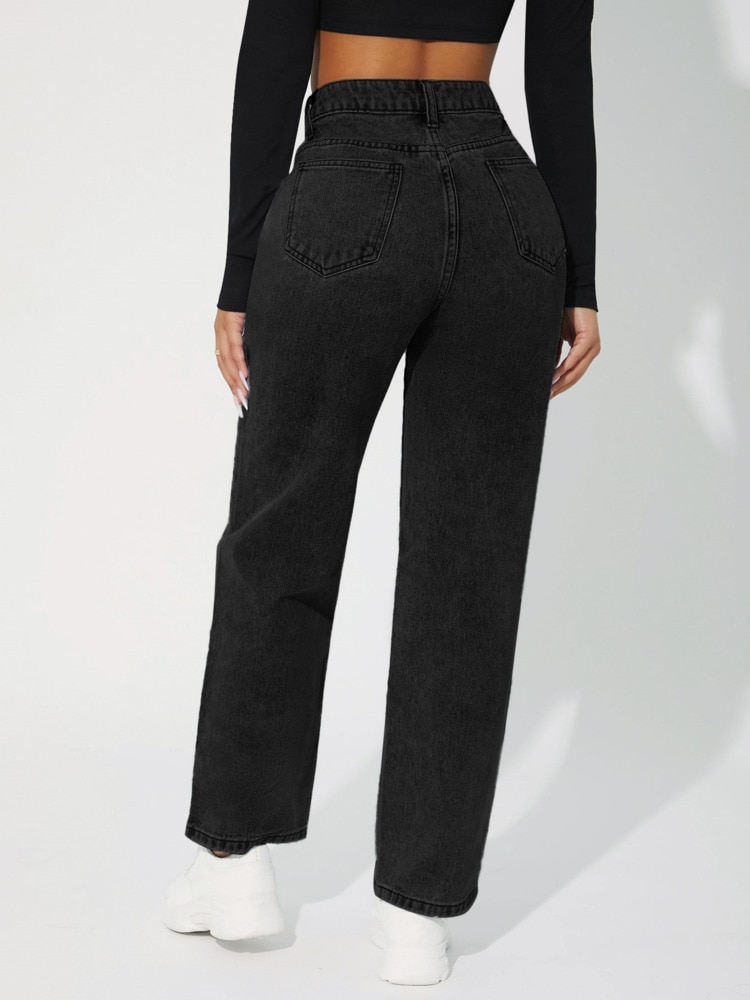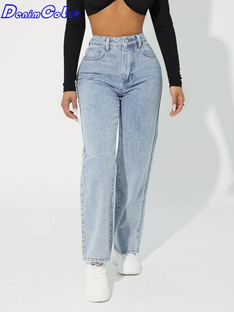 Denimcolab 2023 New High Waist Straight Leg Jeans Woman Simple Style Casual Cotton Denim Pants Ladies Loose Streetwear Jeans