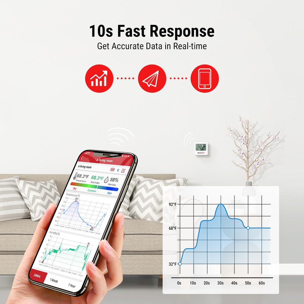 The temperature and humidity range can be set in the phone app. As soon as the date is outside the specified range, the phone will receive a notification.