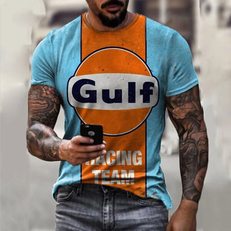 Vintage Men's T Shirt 3d Printed Castrol T-shirt Gulf Oil Racing Tops Tees Biker Short Sleeve Oversized t shirt Man Camisa