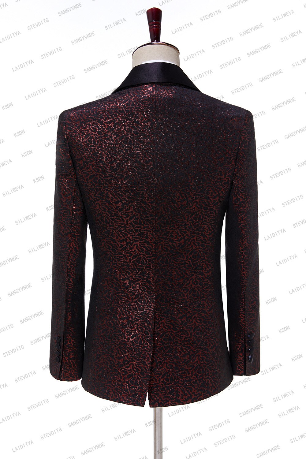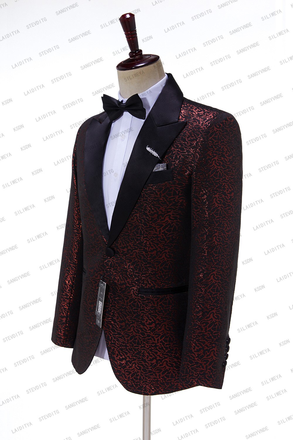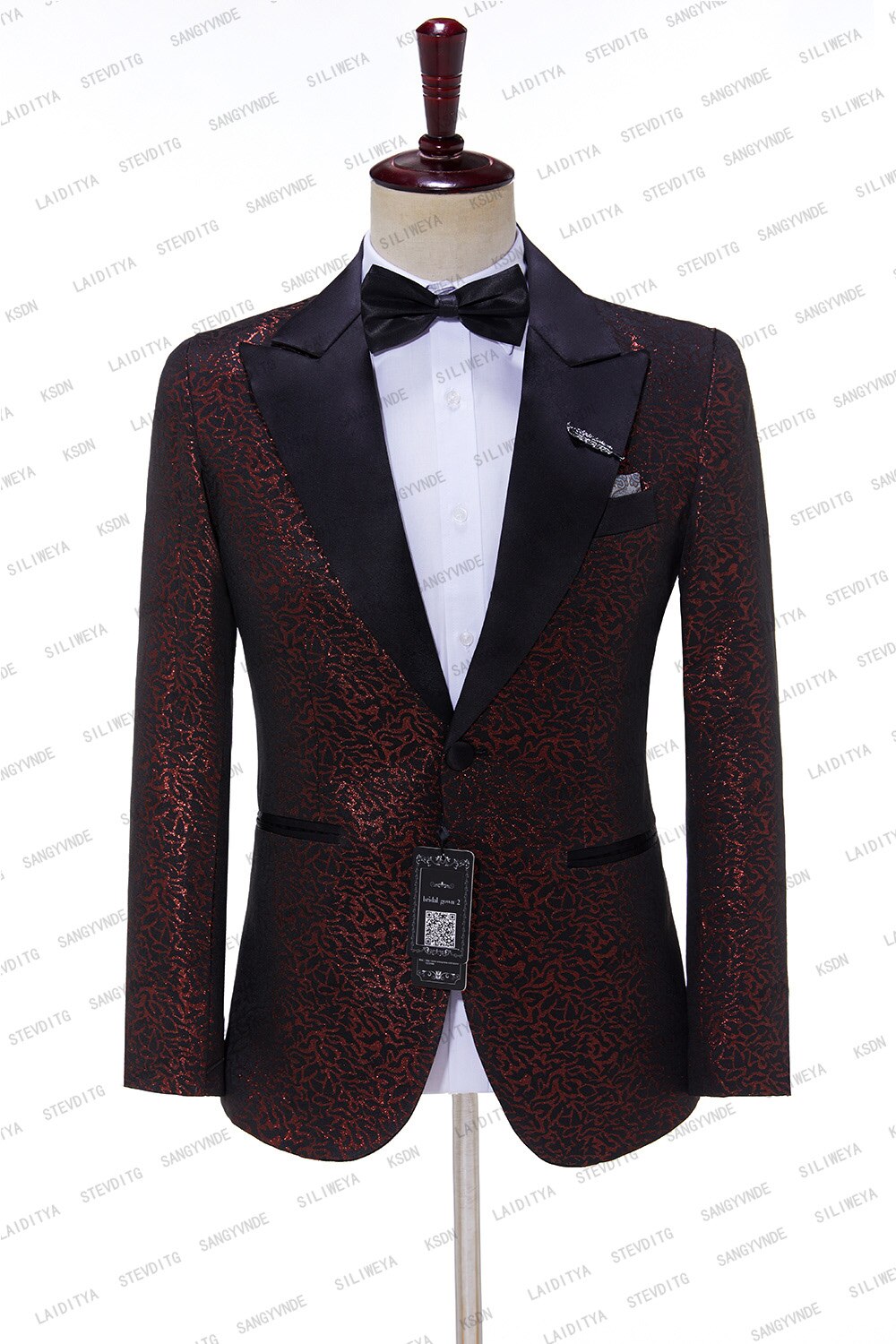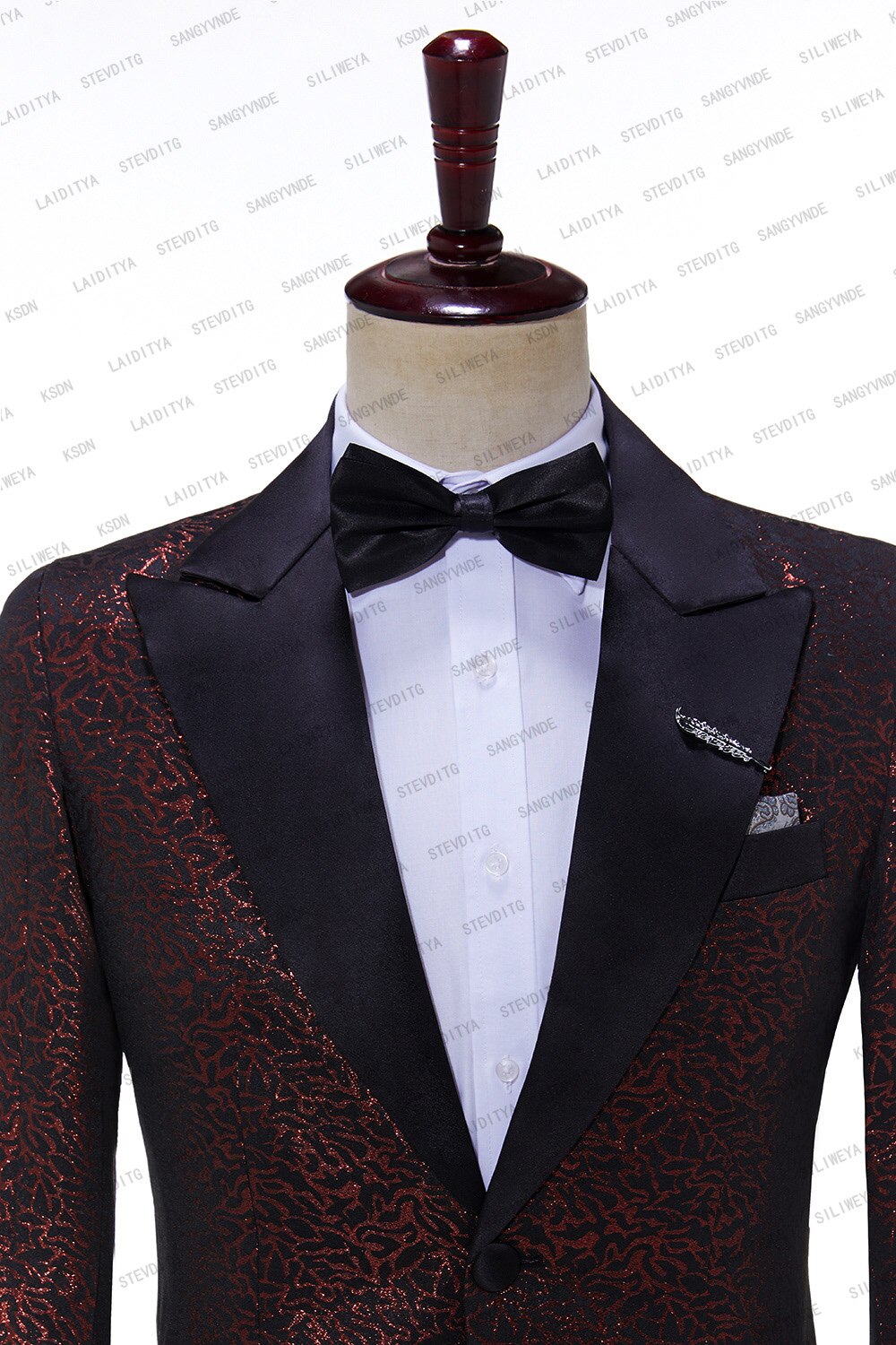 2023 New Arrival Red Black Jacquard Tuxedos Suit For Men Wedding Slim Fit Gentleman Jackets with Pants 2 Pieces Male Costume