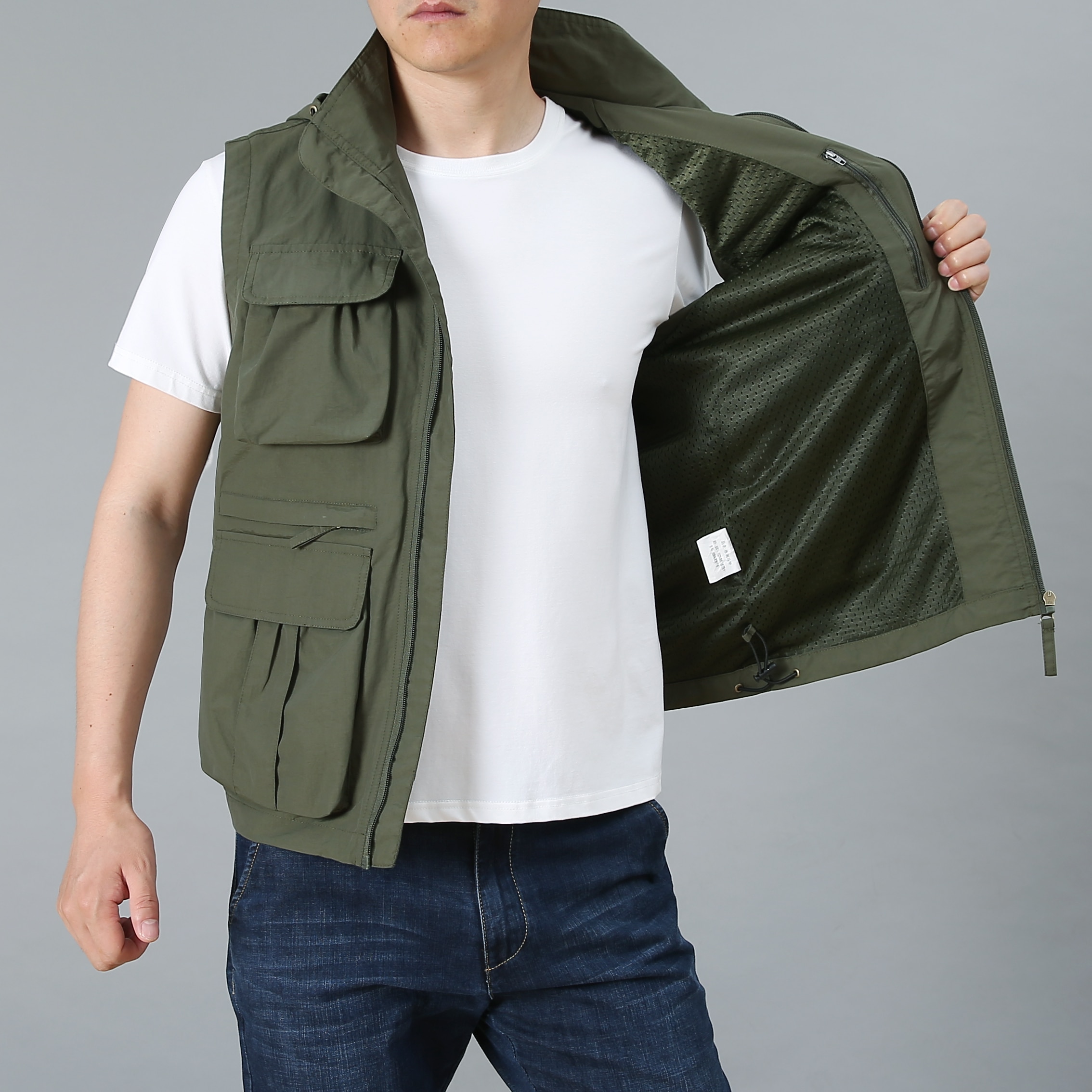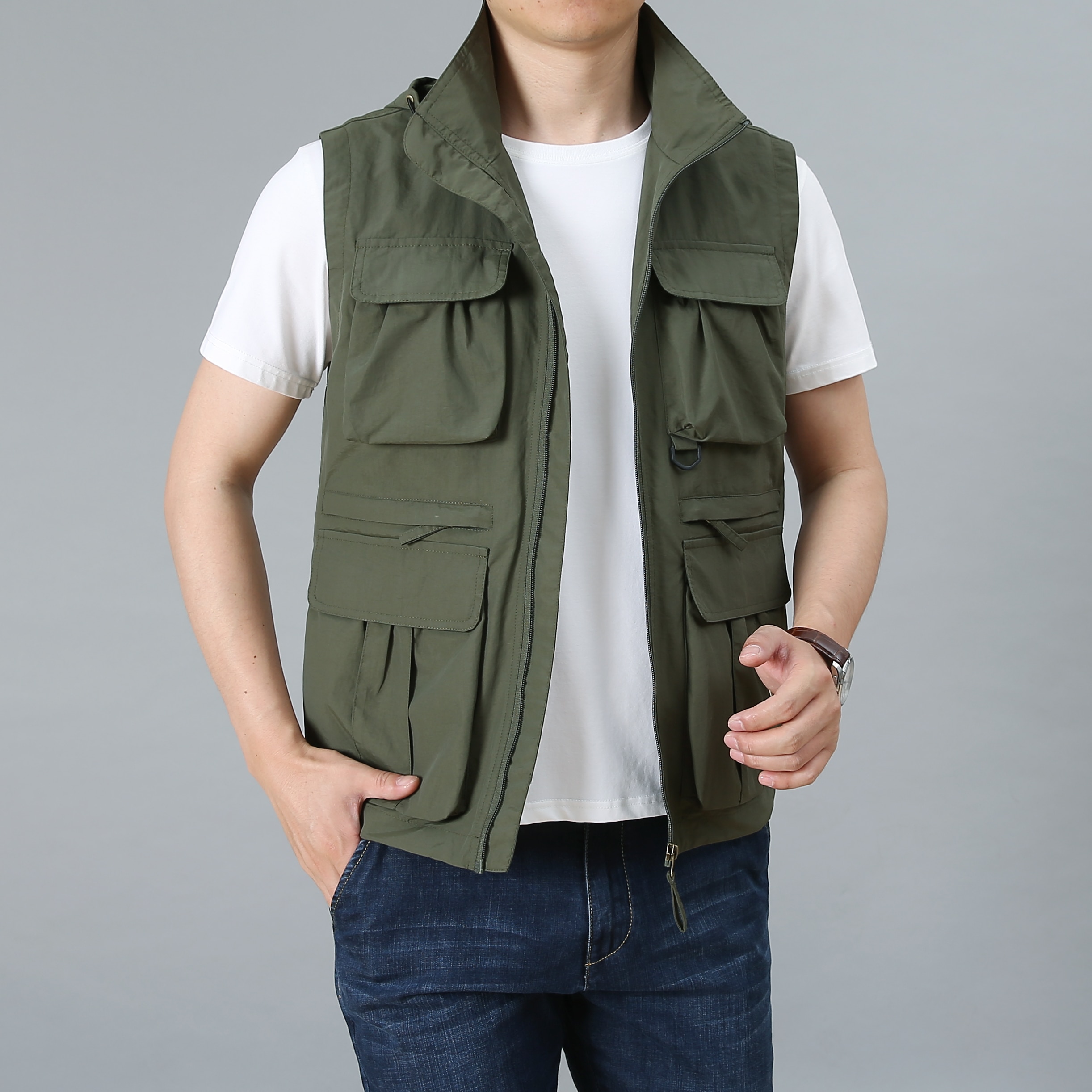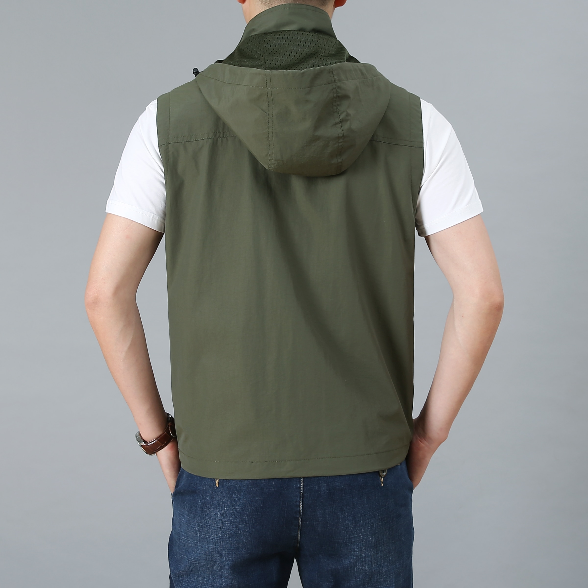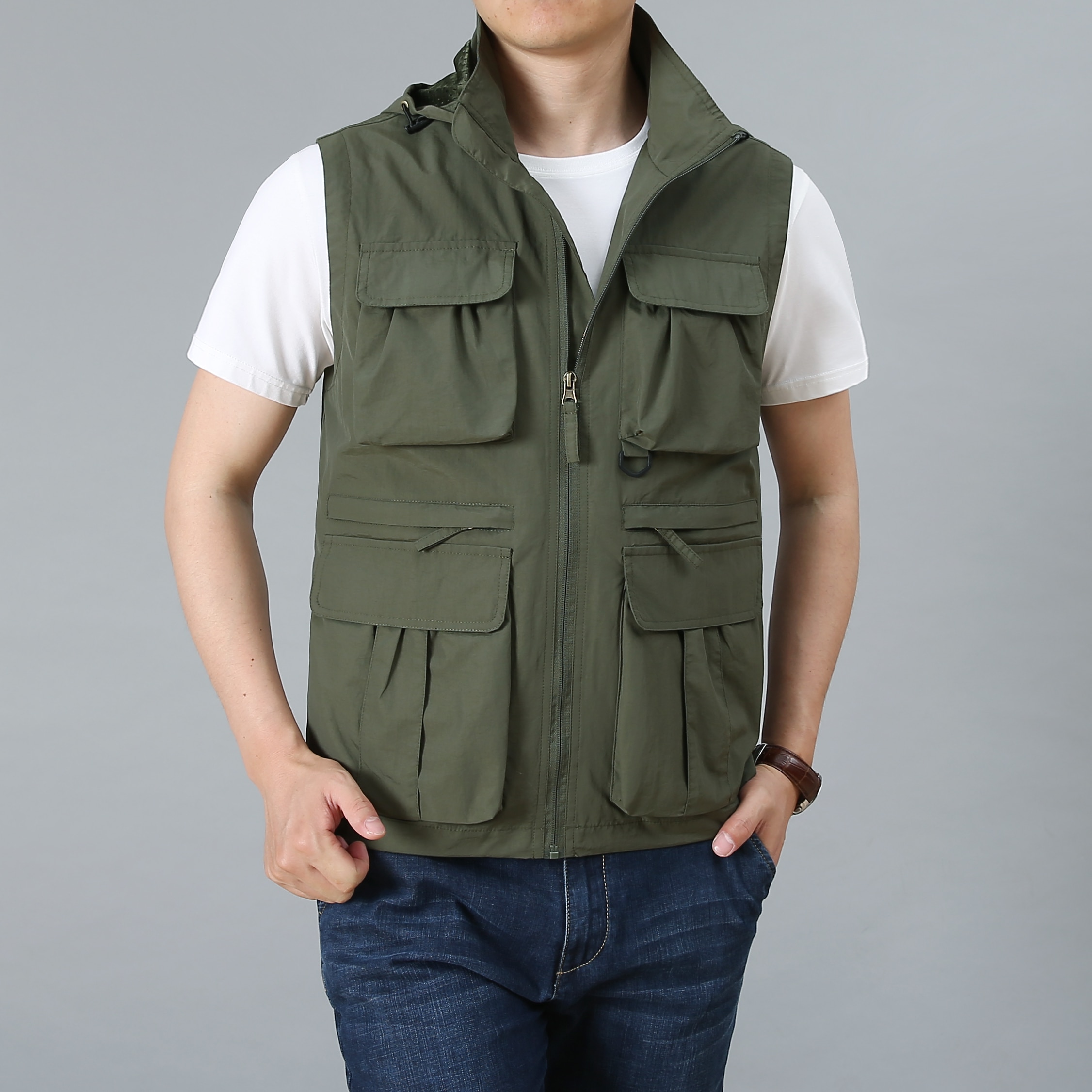 Men Many Pocket Sleeveless Jacket Men New Fishing Casual Jacket Slim Fit Windbreaker Fashion Hooded Sleeveless Jacket For Men