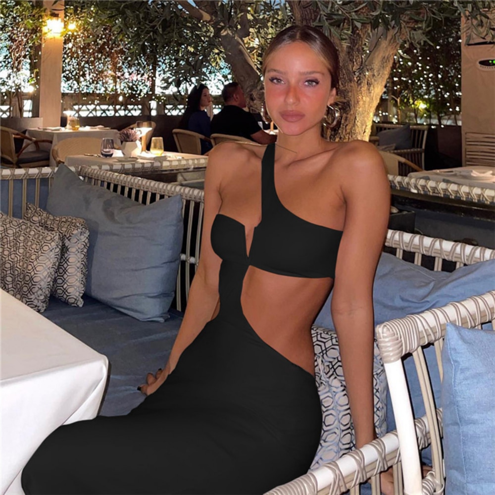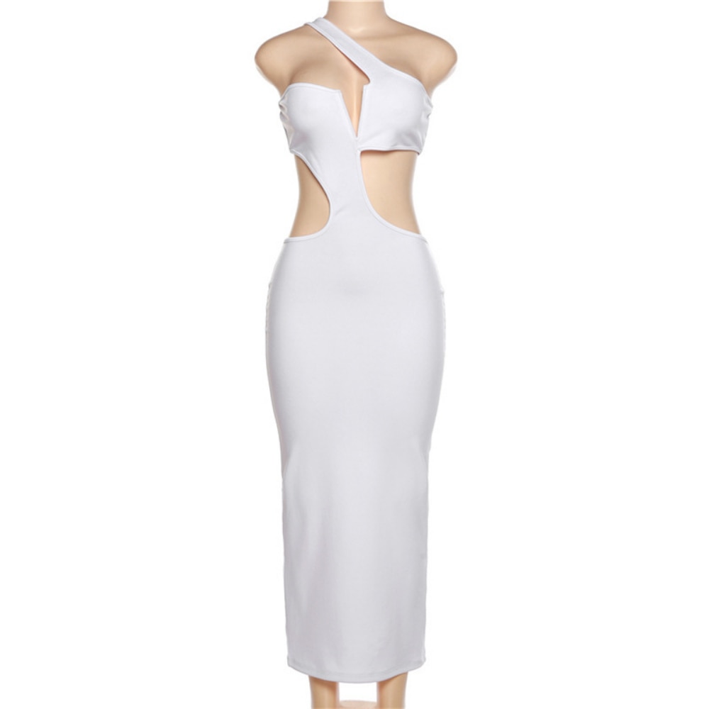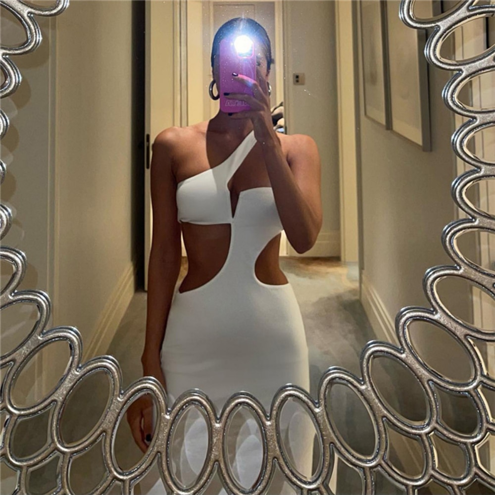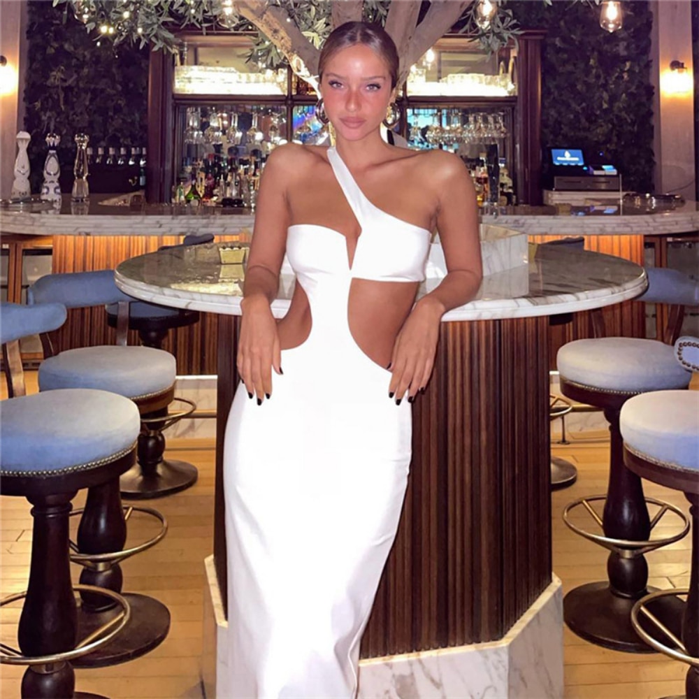 White Long Summer Dress Women Sexy Cut Out Slim Evening Party Dress Fashion One Shoulder Vacation Beach Maxi Dresses 2023 New