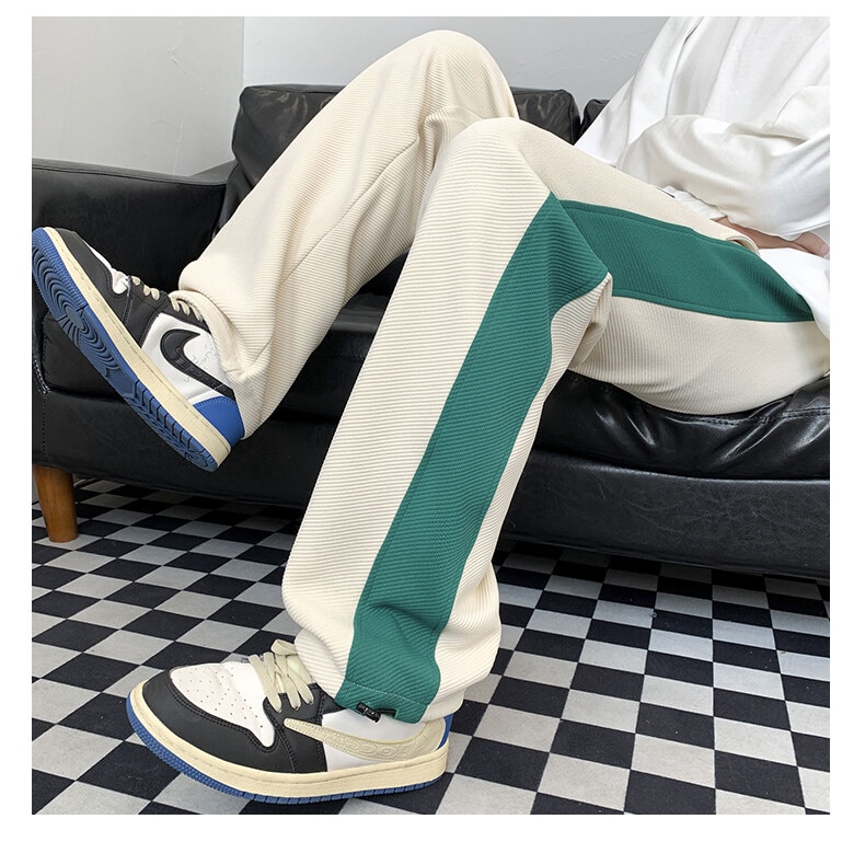 Spring Jogger Men Padded Casual Pants 2023 Unisex High Street BF Hip Hop Sweatpants Wide Leg Sports Straight Striped Trousers