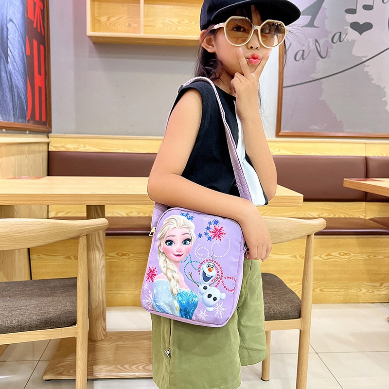 Disney Princess Series Crossbody Bags Frozen 2 Elsa Sofia Cartoon Shoulder Bag for Girls Fashion Sequins Handbags Kids Gifts