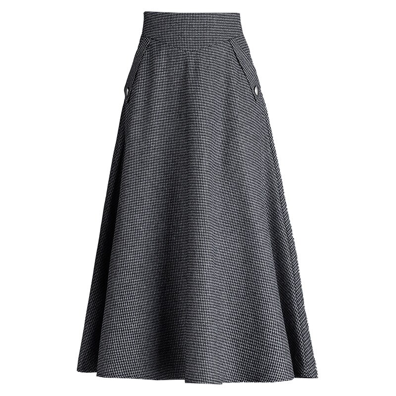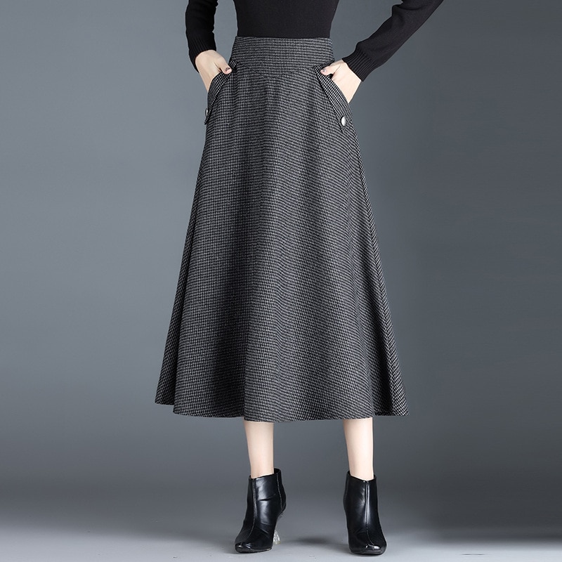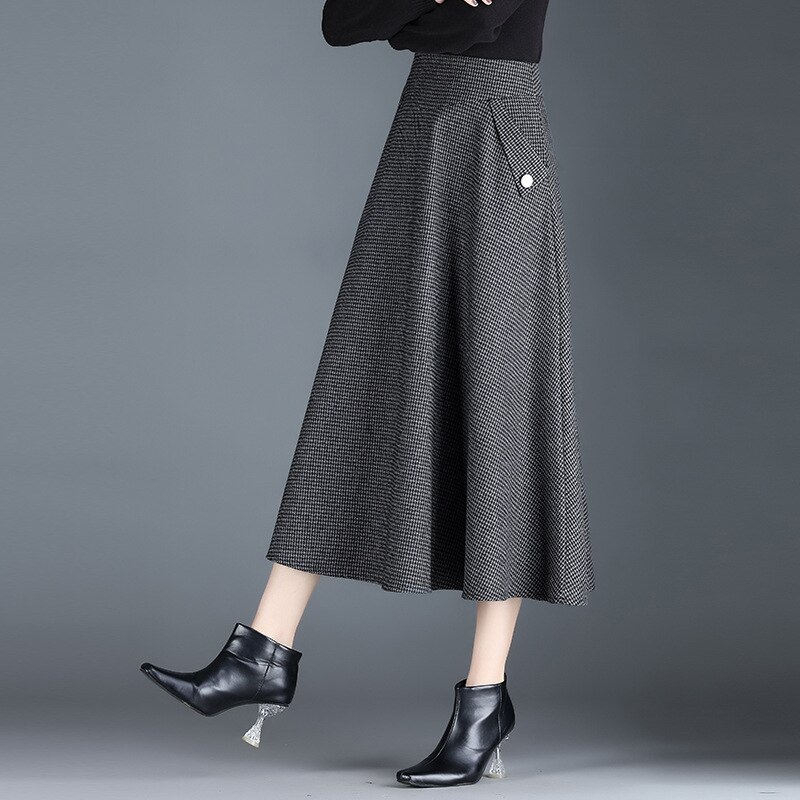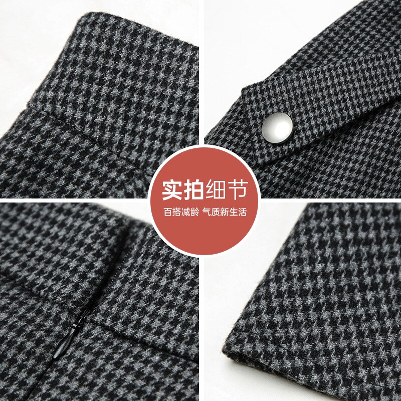 Thousand bird check skirt for women in winter woolen medium length large swing skirt 2022 new thickened umbrella skirt for women