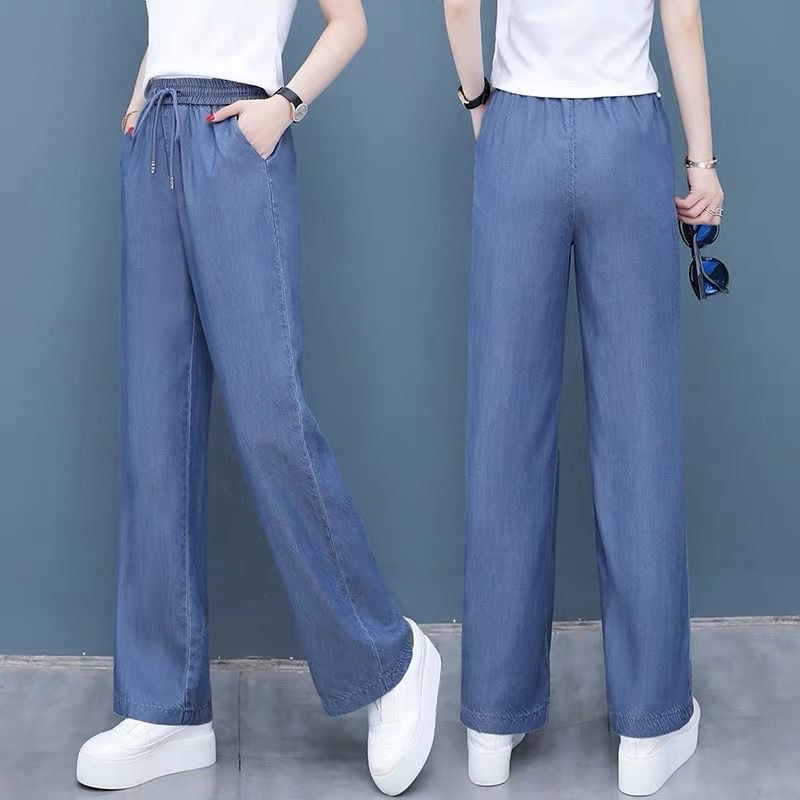 Summer Thin Ice Silk Wide Leg Jeans For Women Fashion High Waist Lace Up Denim Pantalones Korean Loose Casual Straight Trousers
