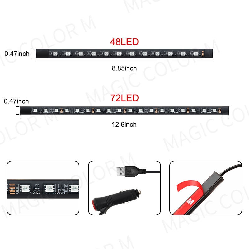 Led Car Foot Ambient Light 48/72 RGB Automotive Interior Decorative Atmosphere Lamp Backlight Strip USB Wireless Remote Control