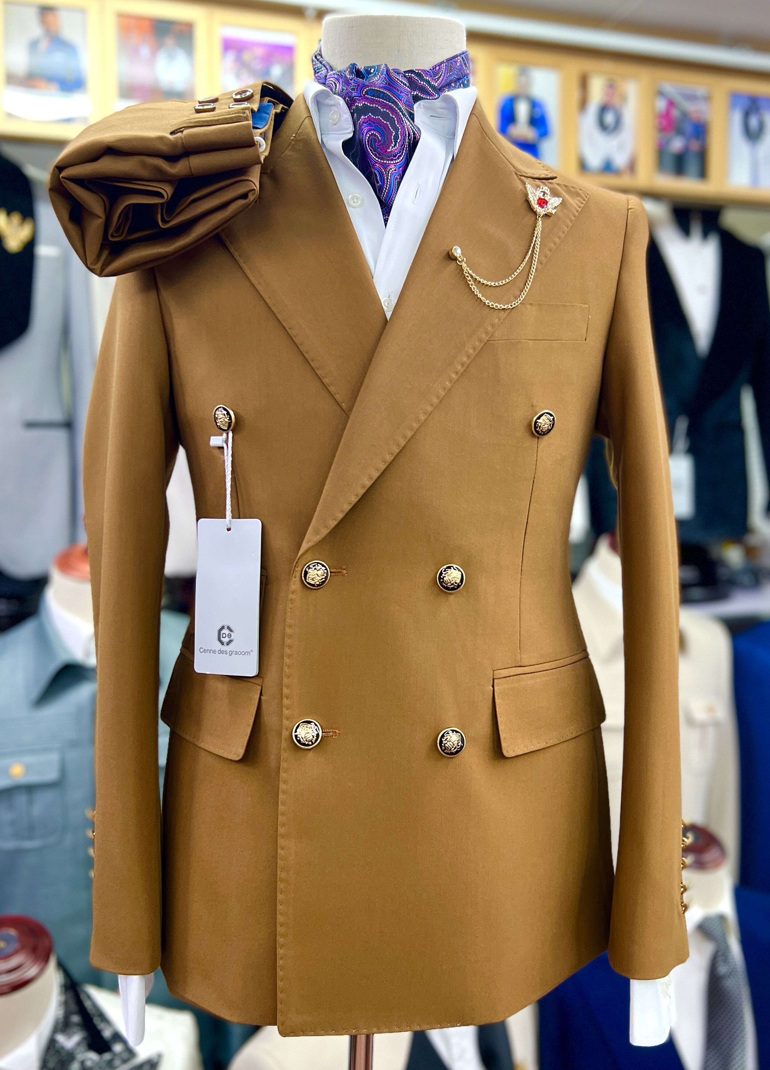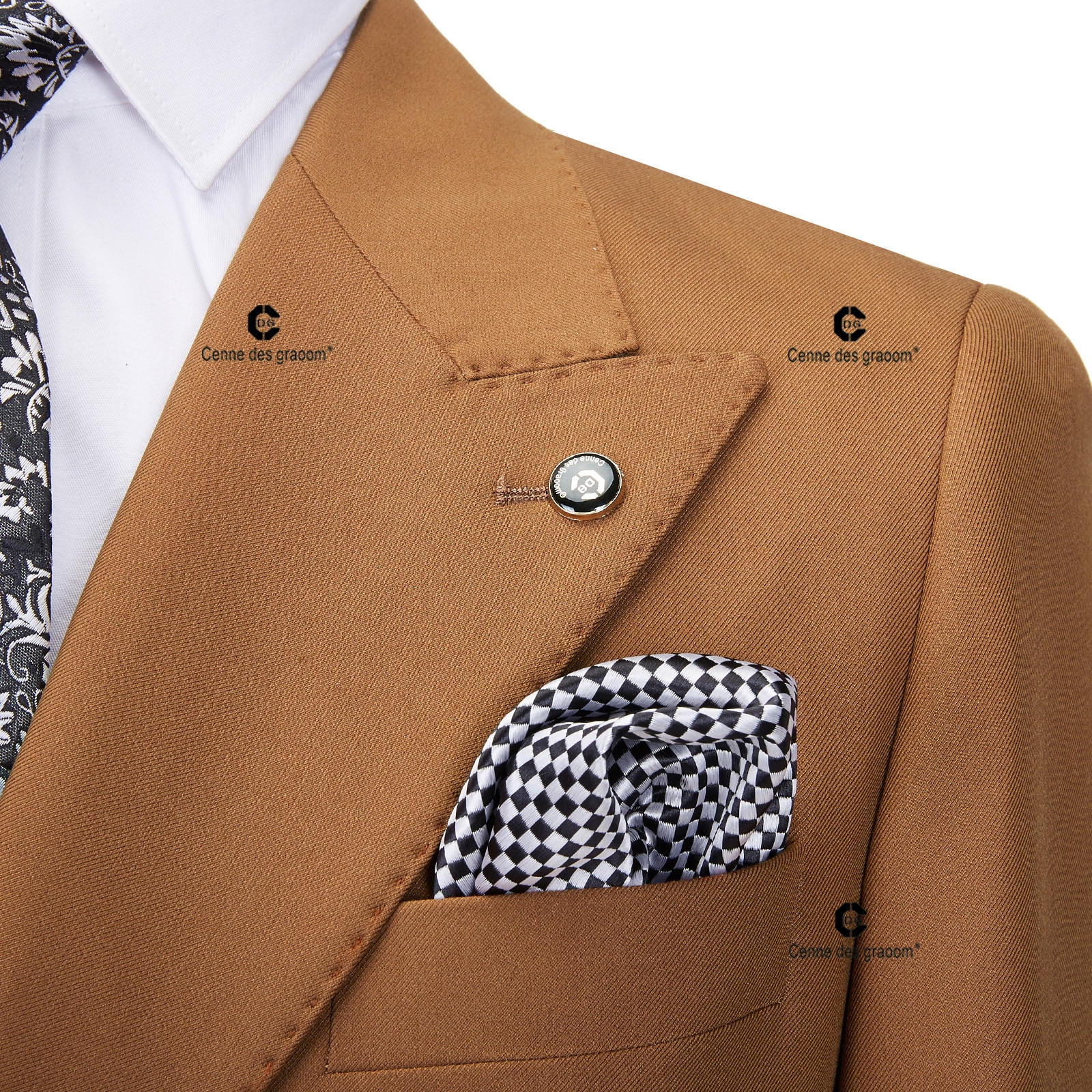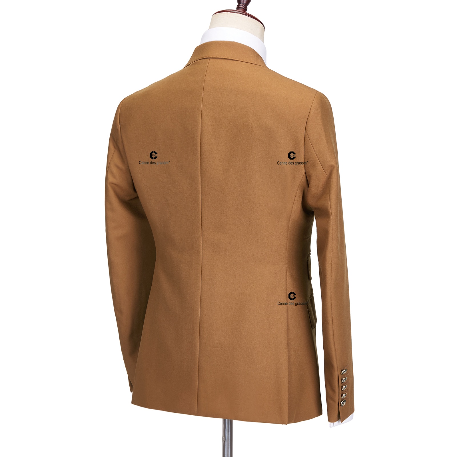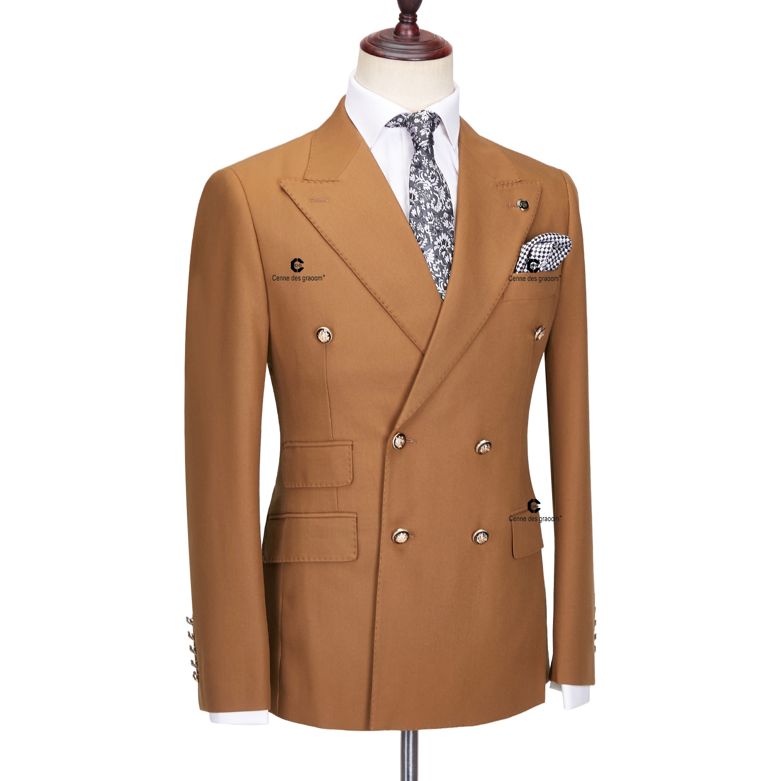 Cenne Des Graoom 2023 New Elegant Suits For Men Double Breasted Two Pieces Set Slim Fit High Quality Wedding Party Costume Brown