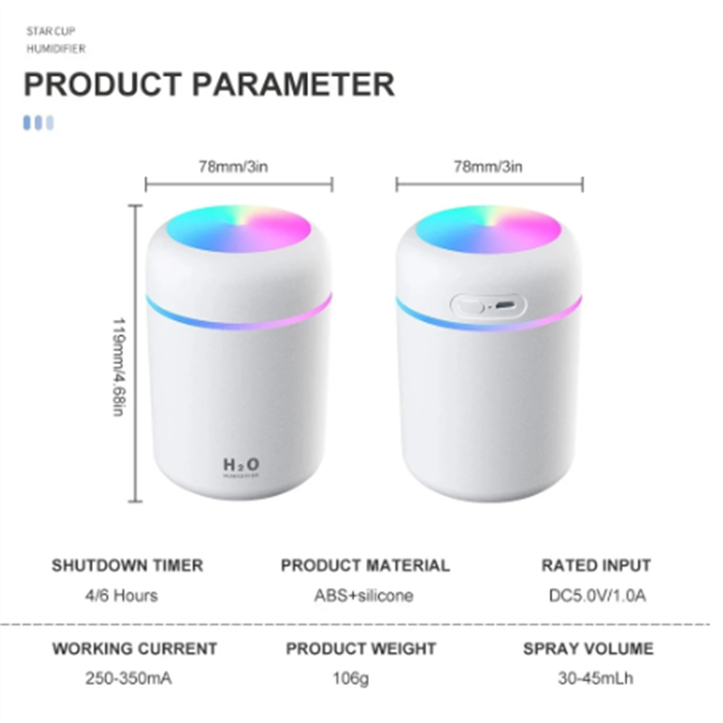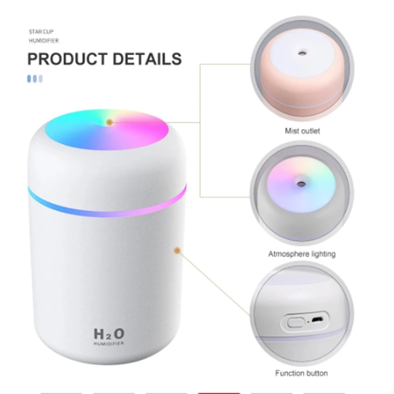 Air Humidifier Portable 300ml Electric Aroma Essential Oil Diffuser USB Cool Mist Sprayer With Colorful Night Light For Home Car