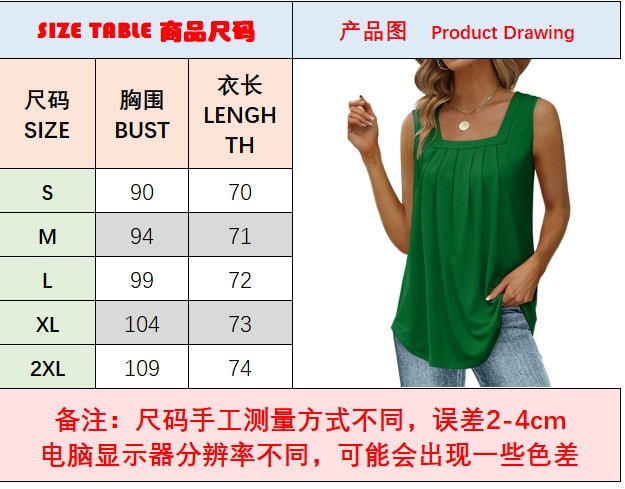 Women Pleated Vests Summer Square Collar Sleeveless Loose Solid T-shirt Casual Female Tank Tops ZC501