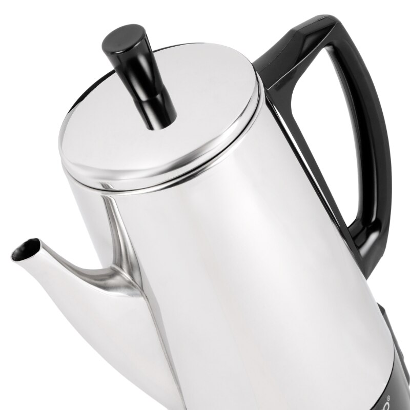 • Luxurious stainless steel, including the filter basket and perk tube.