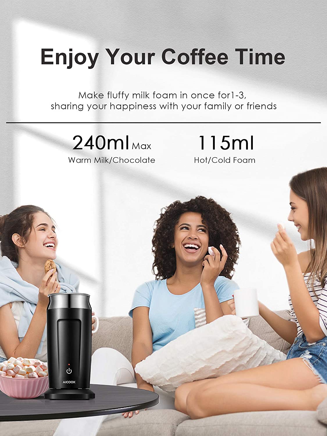 - Capacity:240ml for heating milk 120ml for frothing