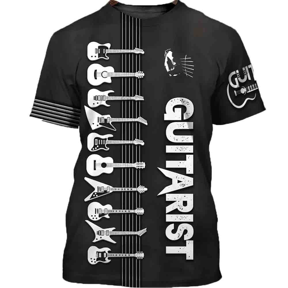 Guitar Graphic 3d Fashion Music T-shirt Summer Men's Pullover Short Sleeve Crew Neck Rock Hip-hop Oversized Comfortable Clothing