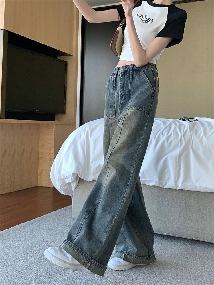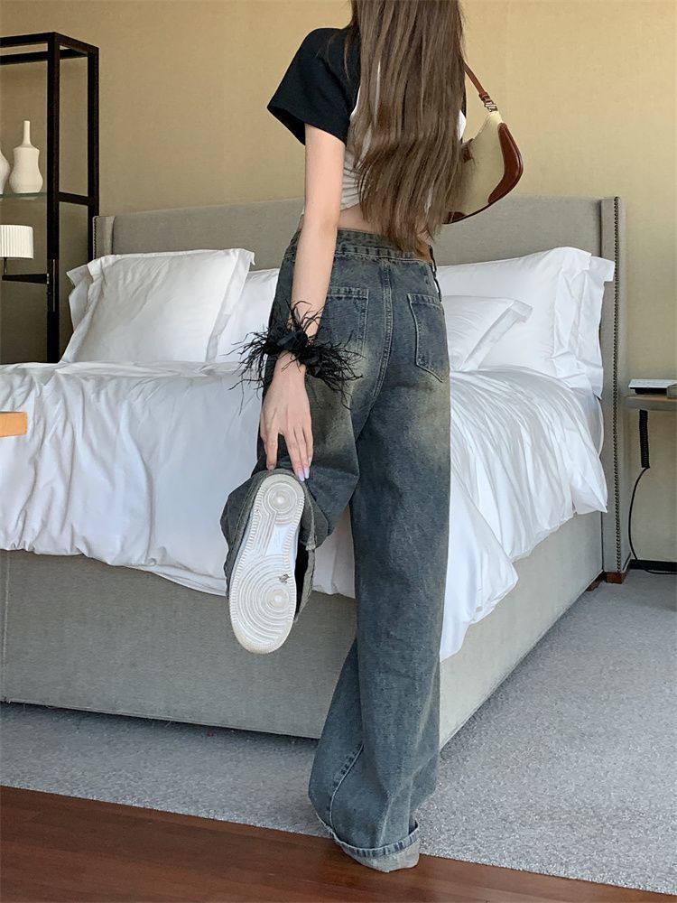 Washed Straight Leg Jeans Women's 2023 Spring/Summer New High Waist Slim Fit Wide Leg Pants Casual Versatile Jeans Women's Wear