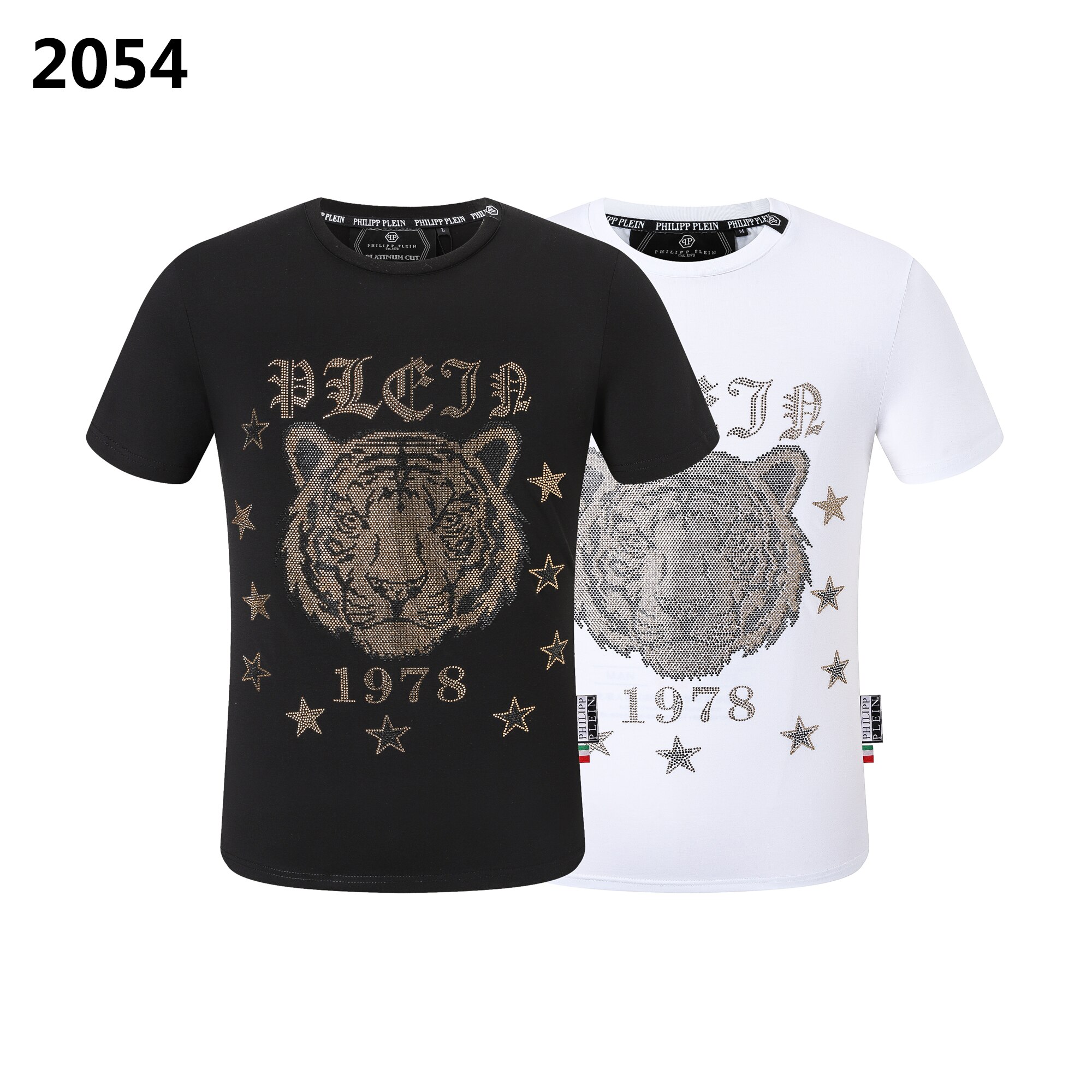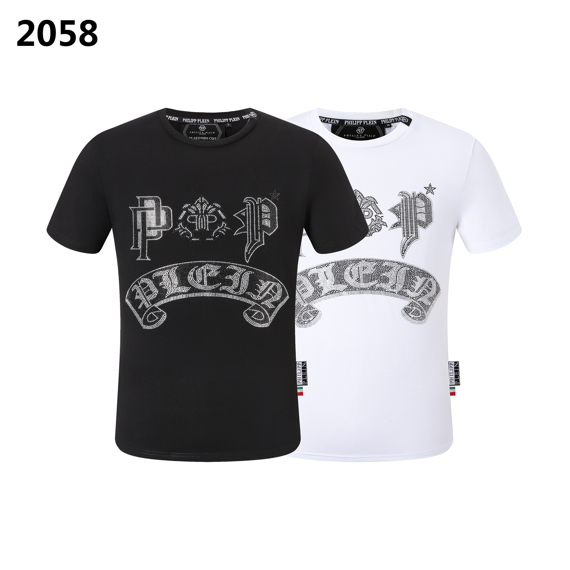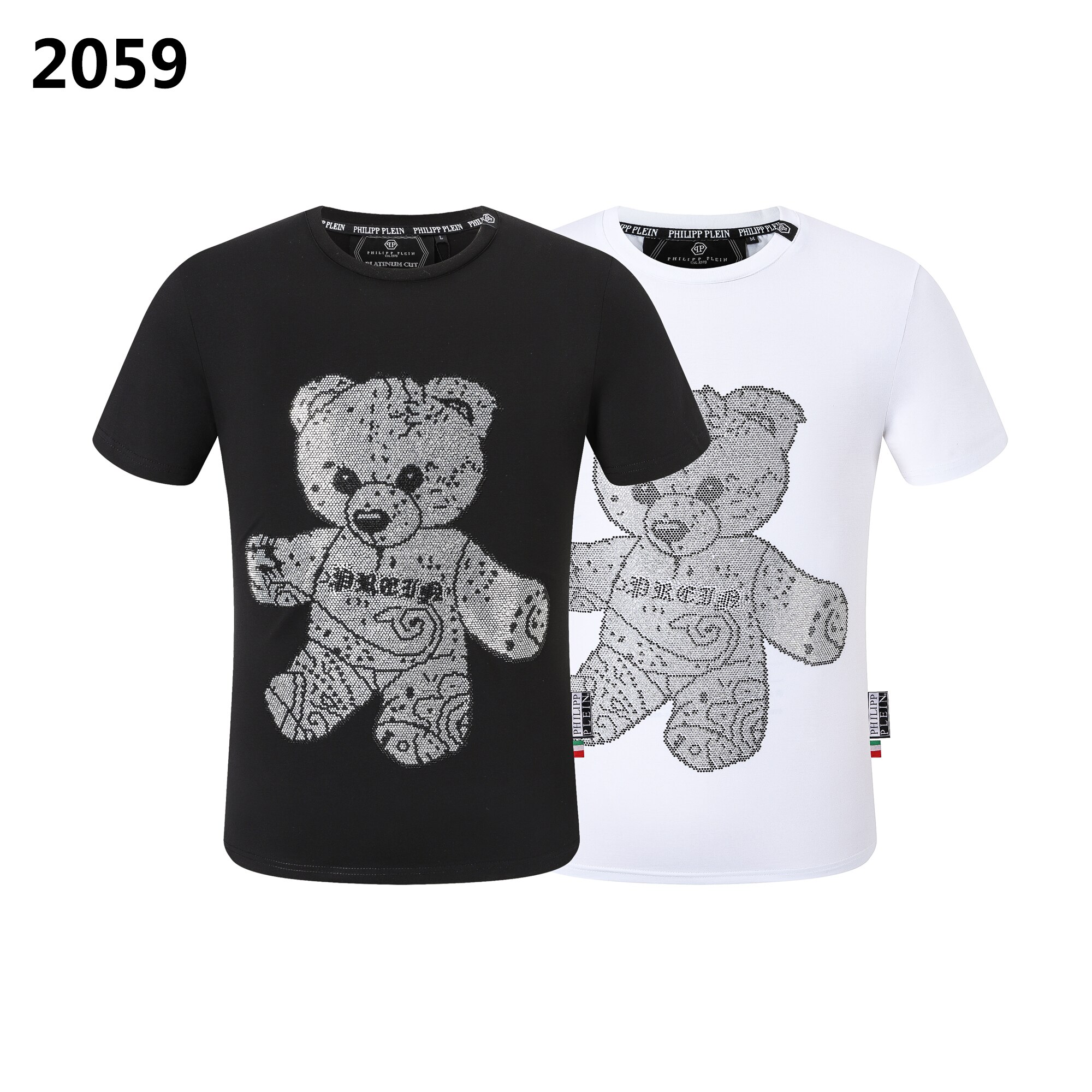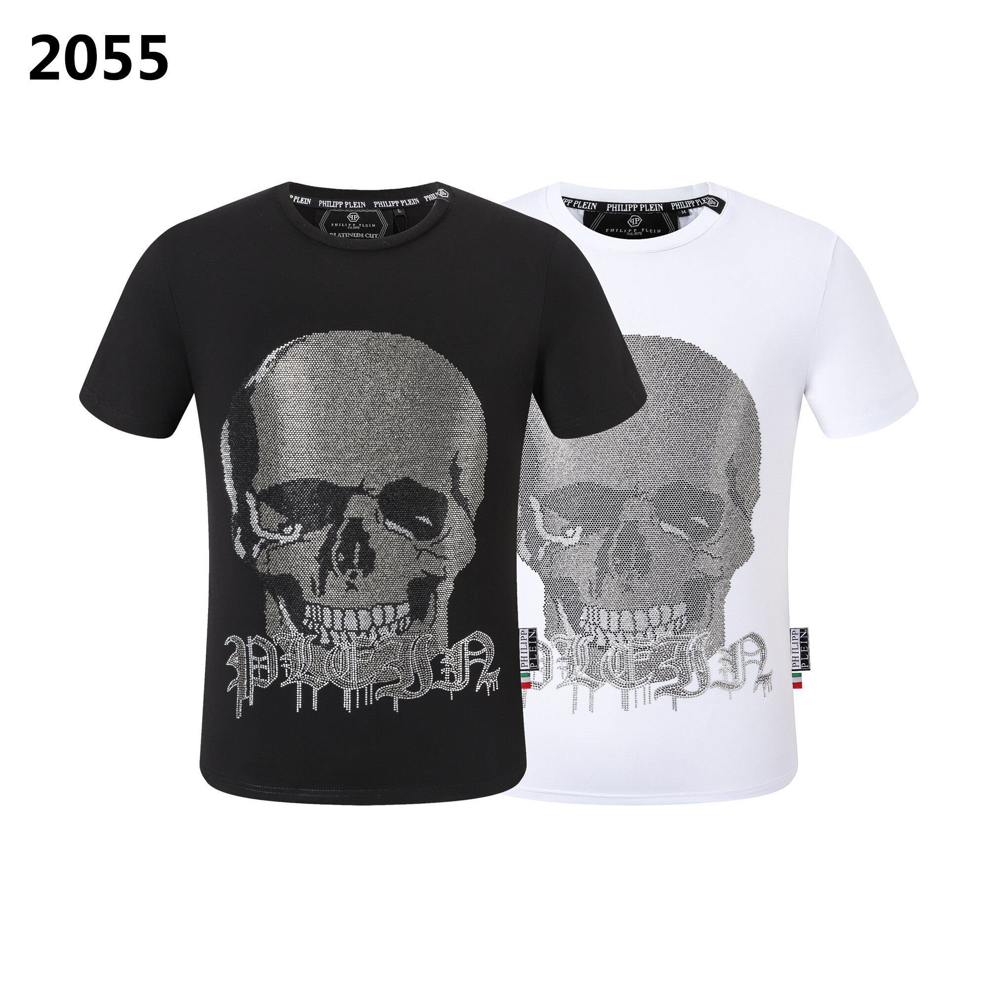 2023-24 Summer New Men's T-Shirt Black and White Skull Head Hot Diamond Sanskrit Letter Cotton Half Sleeve