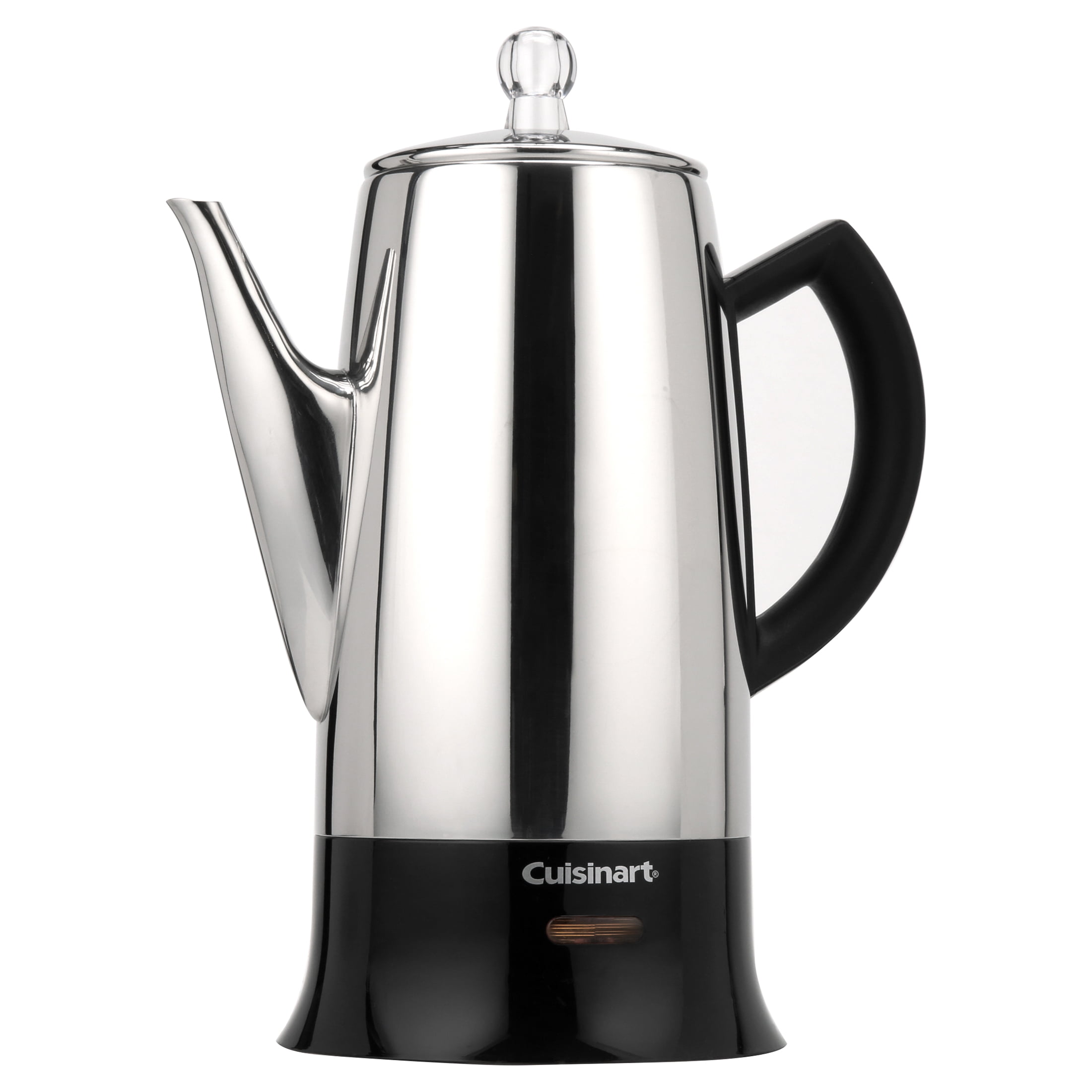 brings modern touches to traditional coffee making techniques with the Classic 12 Cup Percolator. This stainless steel coffee maker percolates hot water through coffee grounds up into the transparent knob on top, creating the familiar sound we all love. The stainless steel removable basket features measurement markings that make it easy to know the quantity of grounds you need to make your coffee. With an ergonomic handle, knuckle guard, and no-drip spout, pouring your fresh coffee is simple.