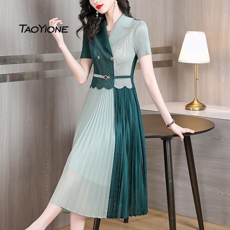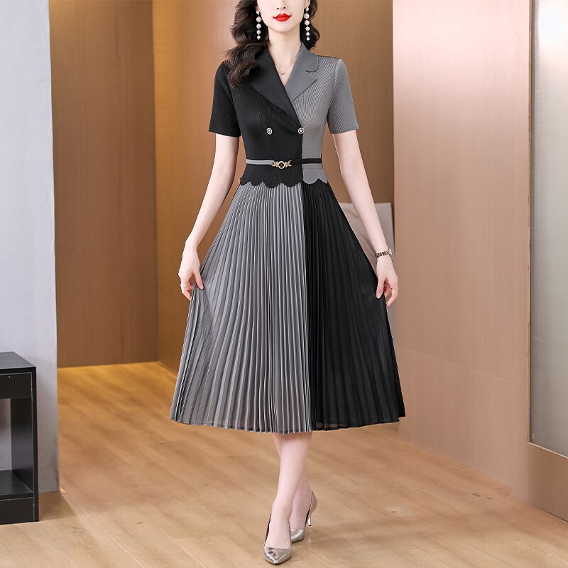 2023 Vestidos Vintage Sweet Chiffon Elegant Summer Solid Pleated Midi Short Sleeve Dress Female Robe Women's Spring Lady Dresses