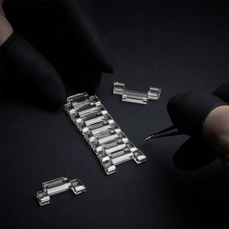 Phiên bản Đồng Hồ Nam Hublot Integral Tourbillon Full Sapphire Watch 455.JX.0120.JX xứng đáng là món phụ kiện dành cho quý ông trong, thách thức mọi ánh nhìn. Hãng đã tạo ra độ trong suốt cao với dây đeo sapphire, điều này cũng khiến nó trở thành một kỳ tích đầy thách thức để đạt được. Ricardo Guadalupe, Giám đốc điều hành của Hublot từng đánh giá về chiếc đồng hồ độc đáo này: "Đối với một sáng tạo đặc biệt như vậy, chúng tôi đã chọn bộ máy Automatic Tourbillon mới với các cầu nối bằng sapphire của nó, độ trong suốt của nó tạo nên một cảnh tượng tuyệt đẹp".