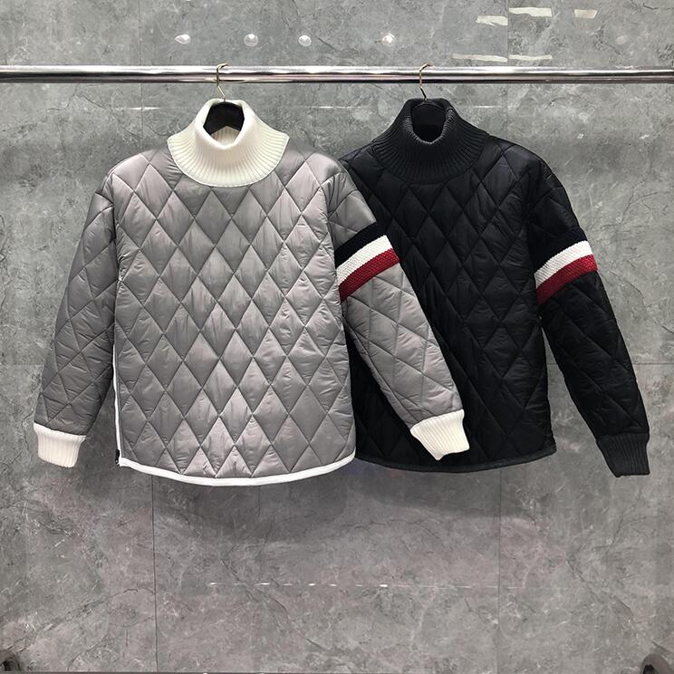 New Fashion Brand Cotton Clothes Men Pullover Jacket Loose Patchwork Striped High Collar Thick Winter Casual Coat
