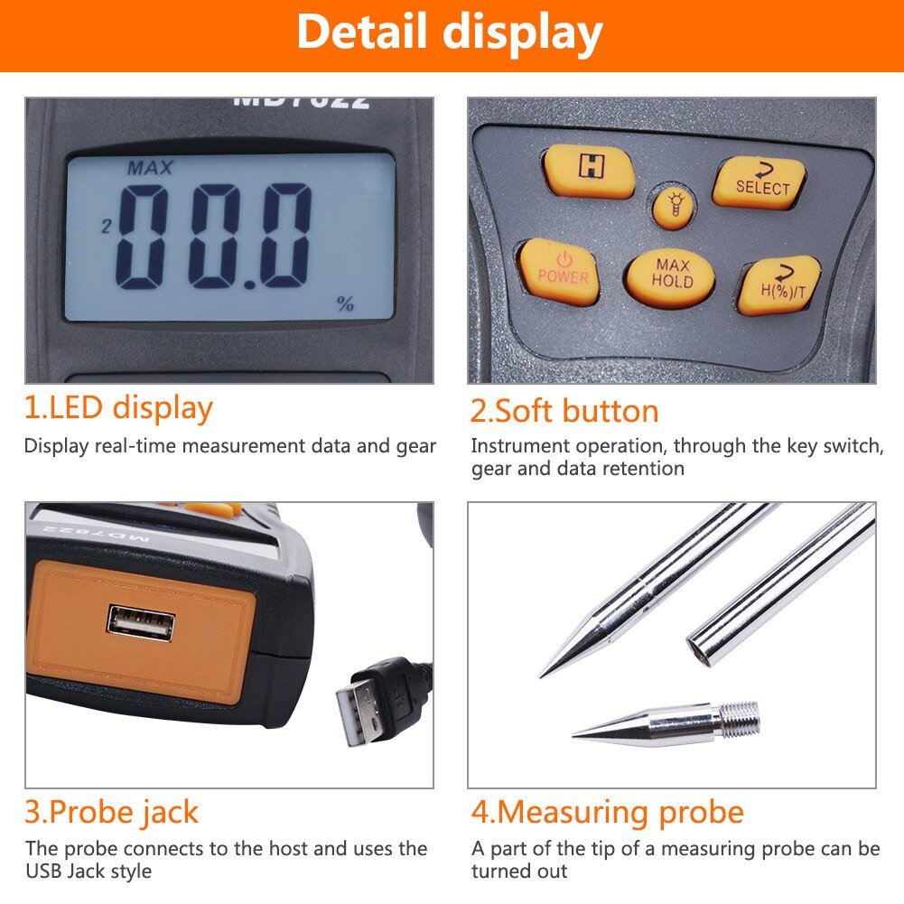Digital Grain Moisture Temperature Meter LCD Display Humidity Tester Wheat Corn Rice Test Hygrometer Detector Probe Measure Tool