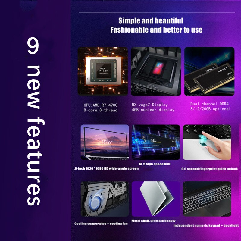 2022new 15.6-inch metal Laptop Backlit AMD R7-4700 lightweight portable business office design computer 20GB ram 256G 1TB SSD