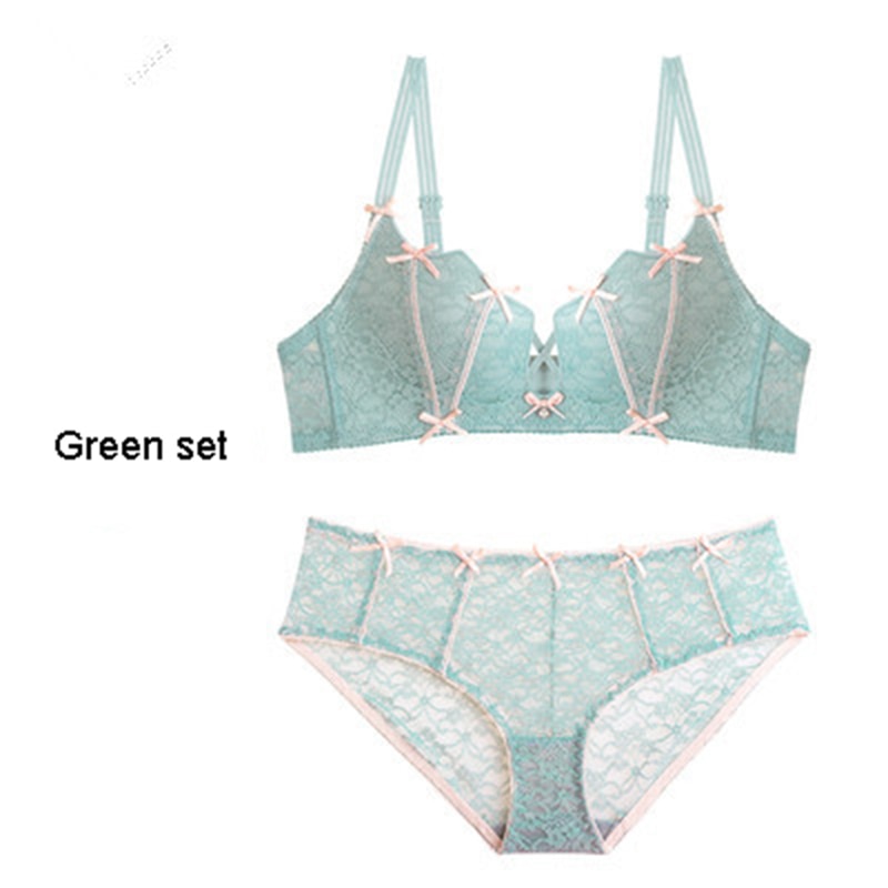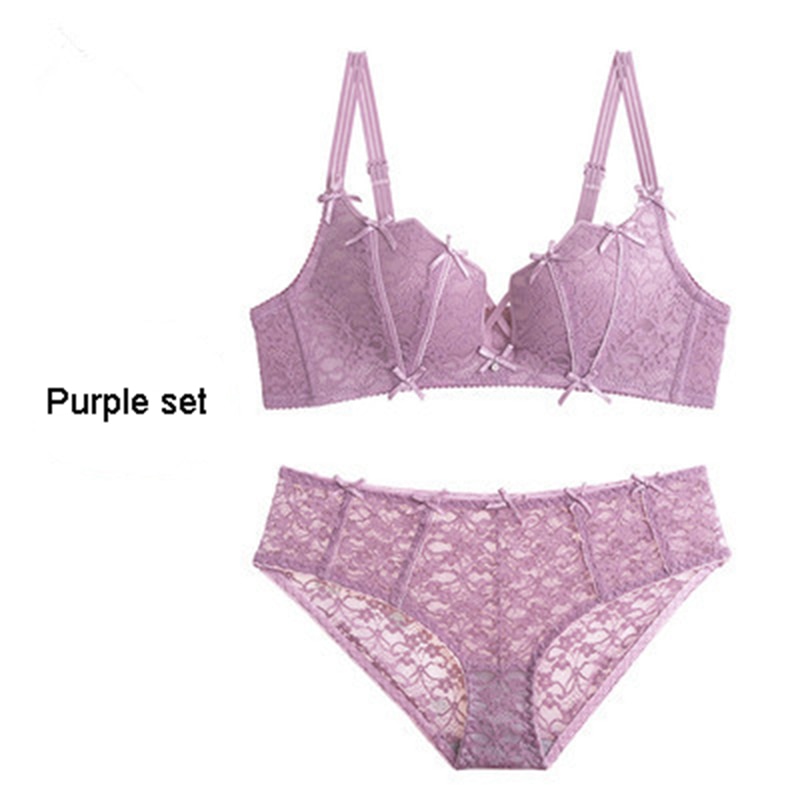 Underwear Women's Lace Sexy Cute Kawaii Gathering Push Up Comfort Wireless Beauty Back Ladies Bra And Panty Female Lingerie Set