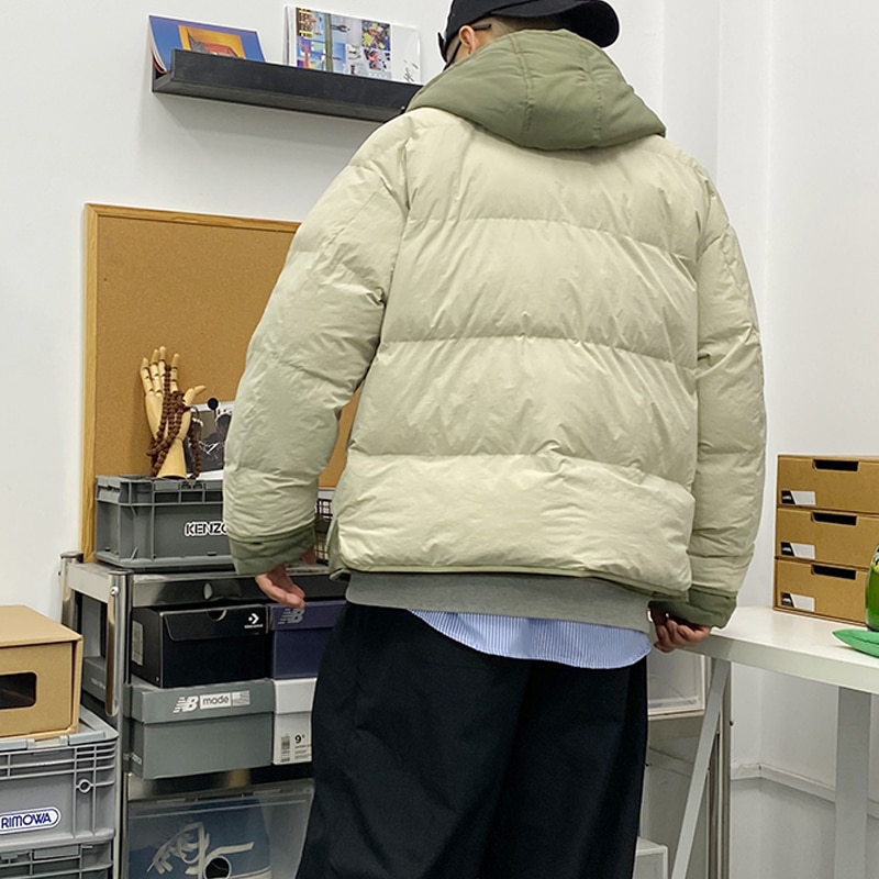 Harajuku Thick Parkas Jacket Men Cotton Solid Color Two-piece Hooded Padded Jackets Japanese Casual Oversize Coat Winter Unisex