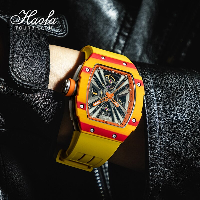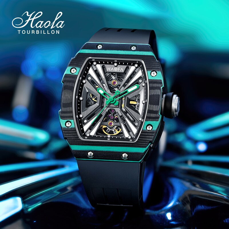 Haofa Automatic Mechanical Skeleton Men Watch Fashion Luminous Automatic Carbon Fiber Watches For Men Power Reserve 80H Luxury