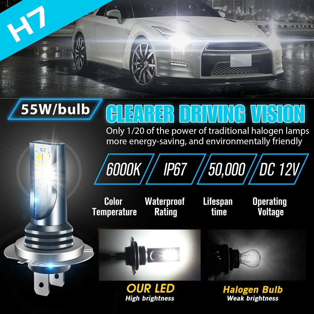* Mini Design, 1:1 size same as the stock bulbs. Plug and Play, easy install within 5 mins, no need more modification or flip. Compatible with H7 LED Fog Light and DRL.