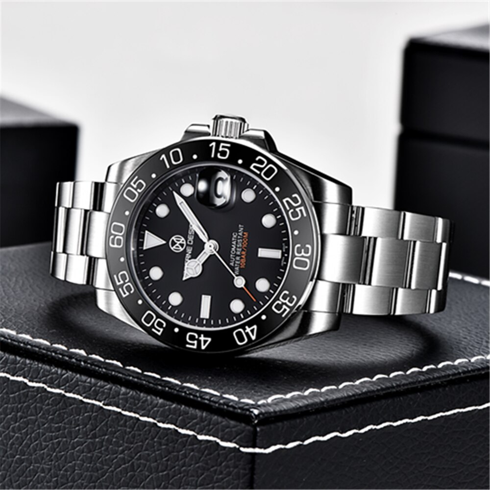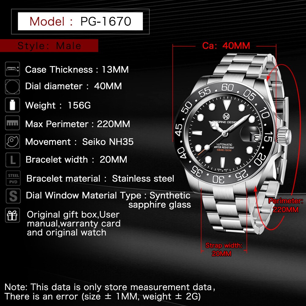 PAGRNE DESIGN 2022 New Men's Automatic Mechanical Watch Stainless Steel Waterproof 200M Sapphire Glass Business Reloj Hombre