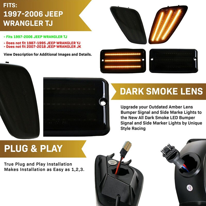 4Pcs/Set Front Bumper LED Signal Lamps And Front Fender Side Marker Lights For Wrangler TJ 1997-2006 LED Lights Car Accessories