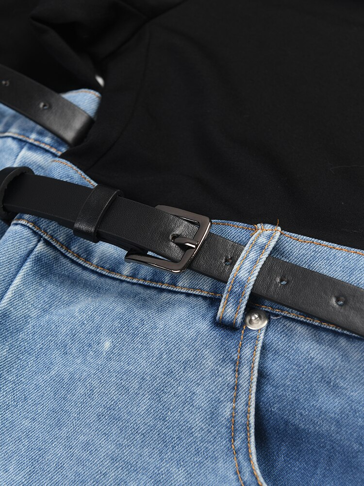 [EAM] High Waist Blue Color-block Denim Long Wide Leg Jeans New Loose Women Trousers Fashion Tide Spring Autumn 2023 1DF3897