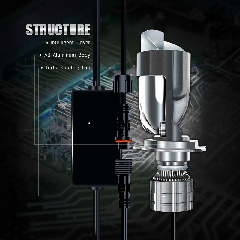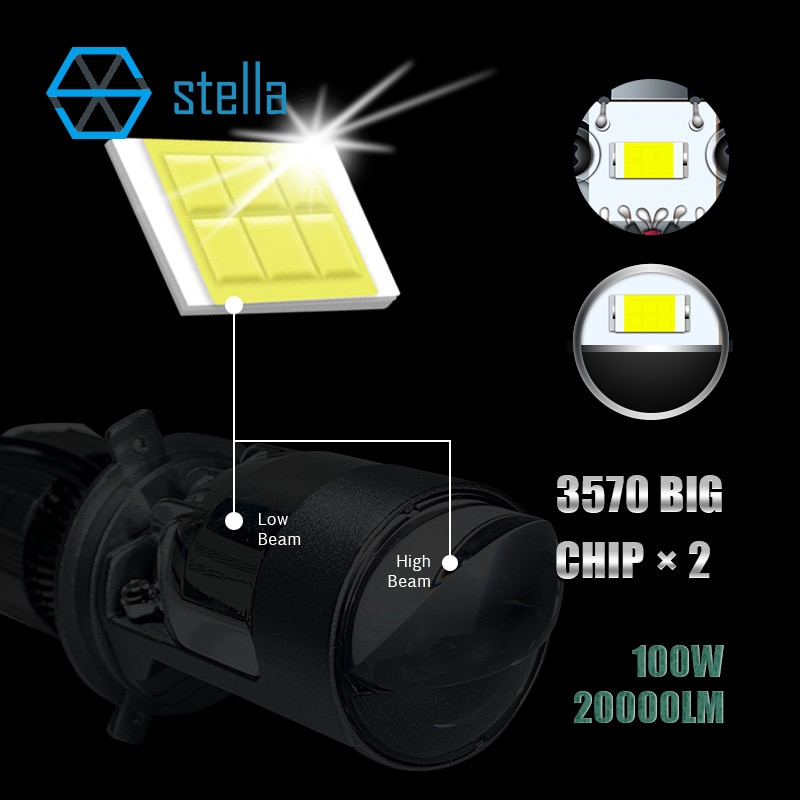 Stella 2 Color Change H4 Mini Lens LED Car/Motorcycle Headlight Projector Bulb Low Beam White/Yellow High Beam White 12V/24V 80W