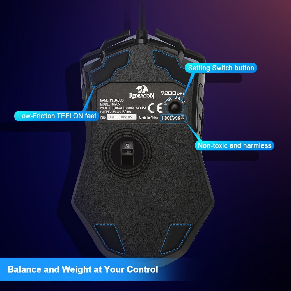 REDRAGON PEGASUS M705 RGB USB Wired Gaming Mouse 7200 DPI 7 buttons mice Programmable ergonomic For Computer PC Gamer Laptop