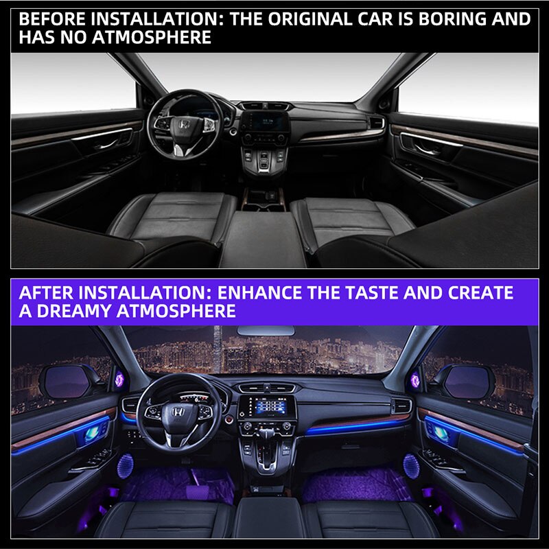 2) musical decoration. The Kit designed to be simple, however, also provides elegance inside the car when driving at night or enjoying music. And because it has sound sensor, the car low brightness system is synchronized with the rhythm of the music.