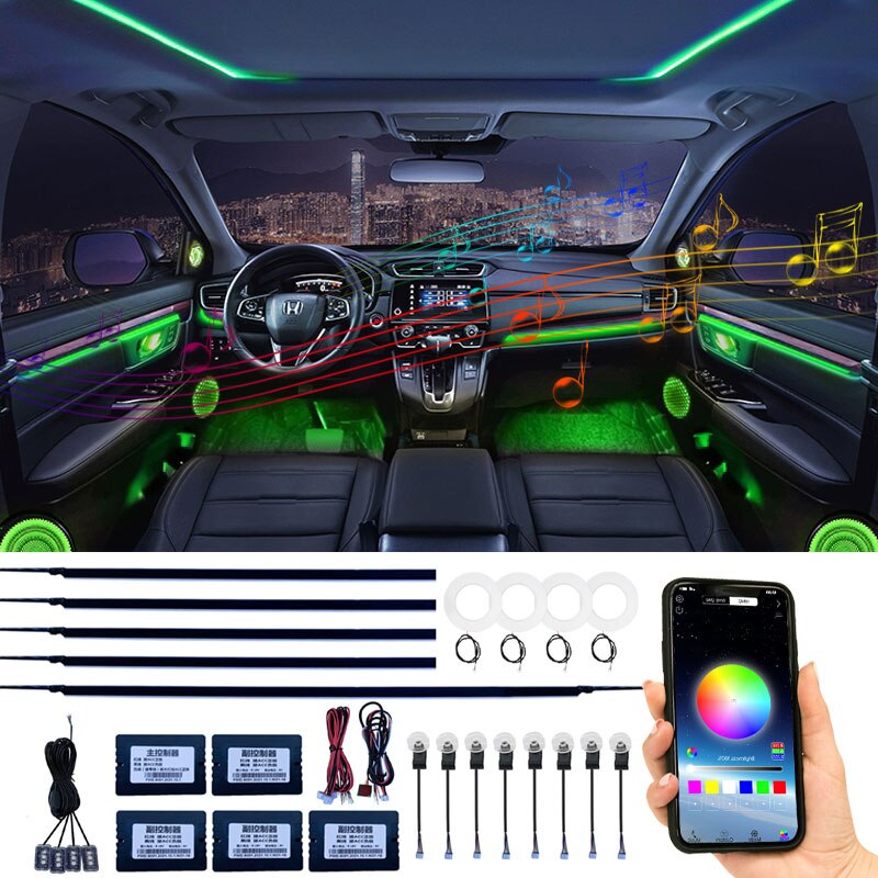 6 In 1 LED RGB 64 Color Ambient Light Interior Acrylic Strip Backlight Car Guide Decoration Atmosphere Lamp 12V Universal