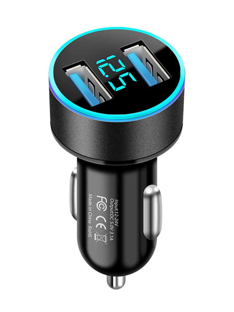 Dual USB Socket 3.1A Phone Charger Cigaretter Light Plug Power Adapter 2 Ports USB Digital LCD Voltage Display for 12V 24V Cars