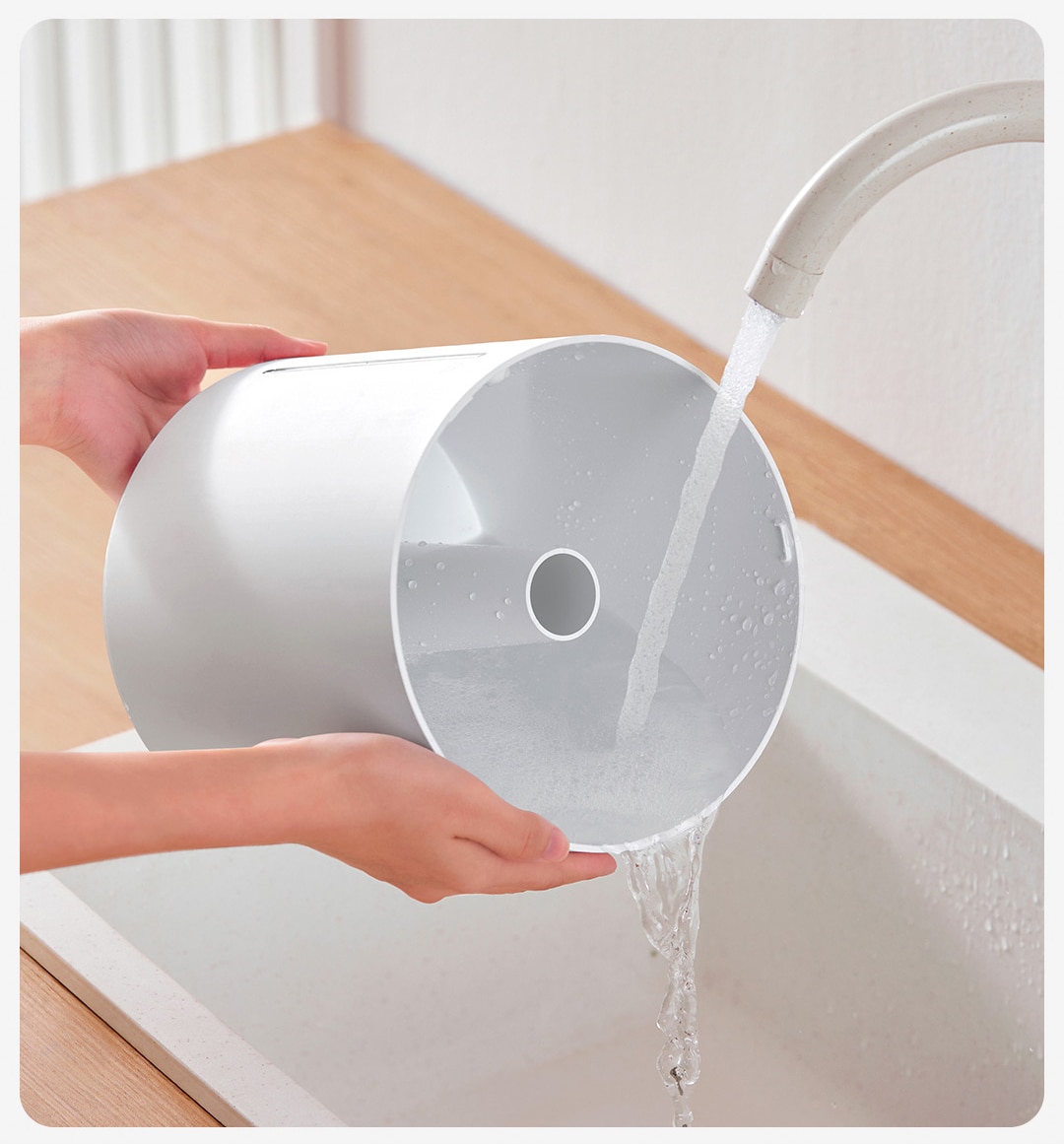 300mL/h humidifying capacity | 99.9% antibacterial efficiency water tank | An easy-to-use top-fill design | Large 4L capacity